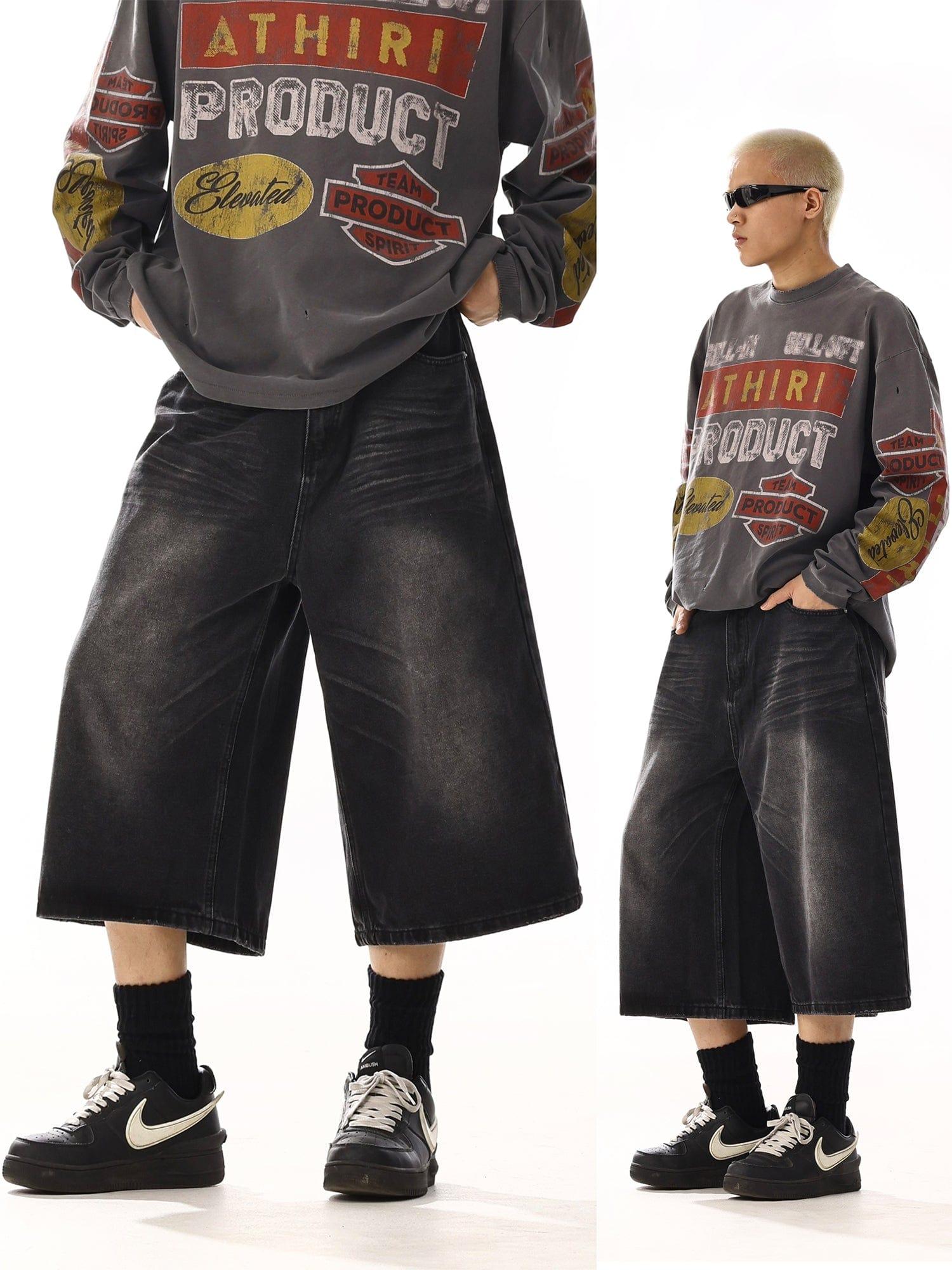 RT No. 13010 WASHED BLACK DENIM SHORT JEANS