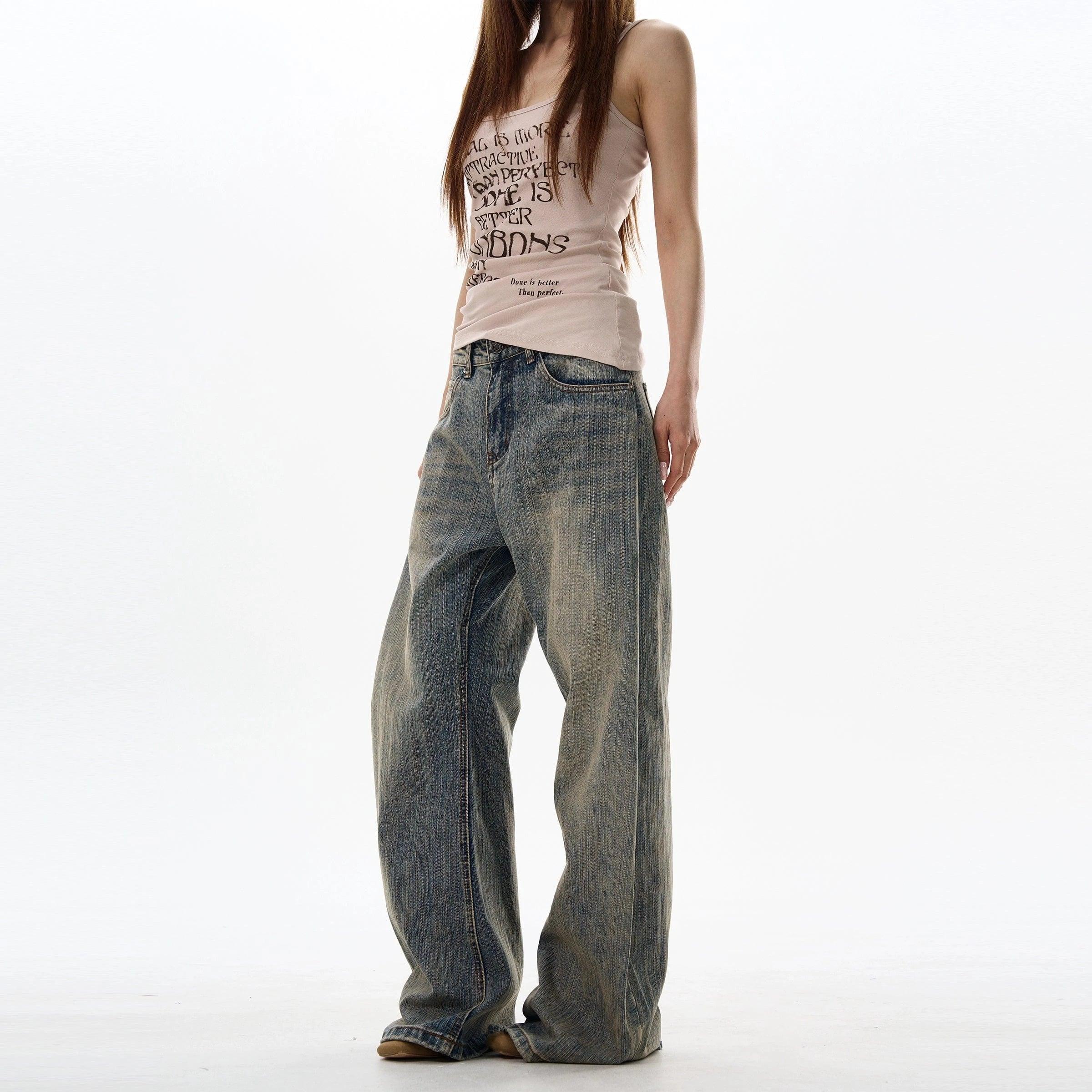 RT No. 18040 BLUE DENIM WIDE STRAIGHT JEANS Unisex