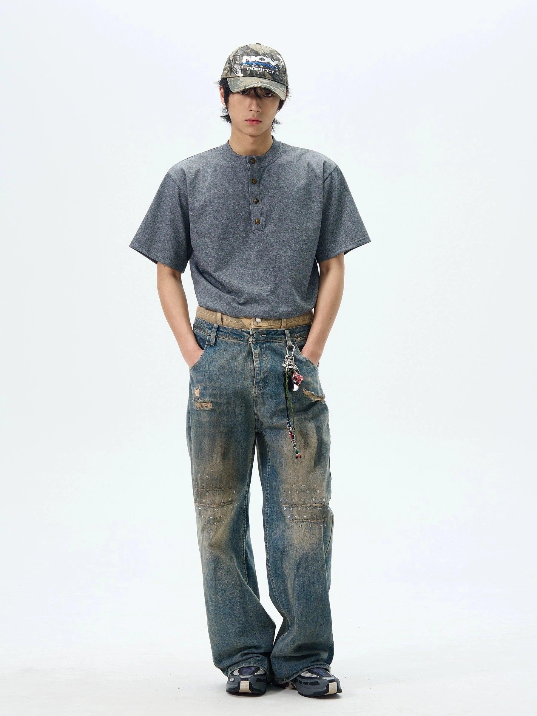 RT No. 18053 DISTRESSED MUD WASHED DENIM STRAIGHT JEANS