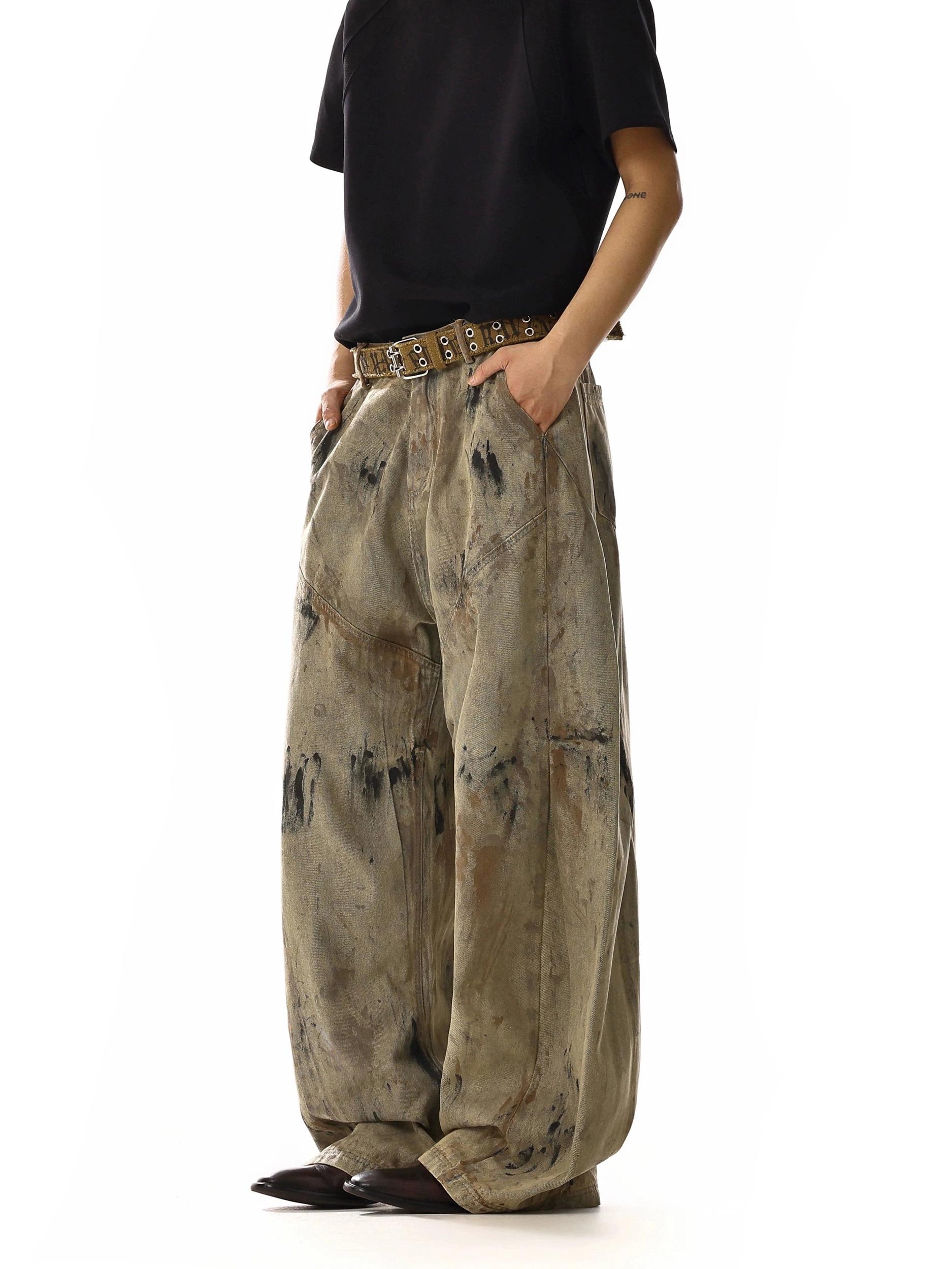 RT No. 18126 GRAFFITI LIGHT BROWN STRAIGHT PANTS
