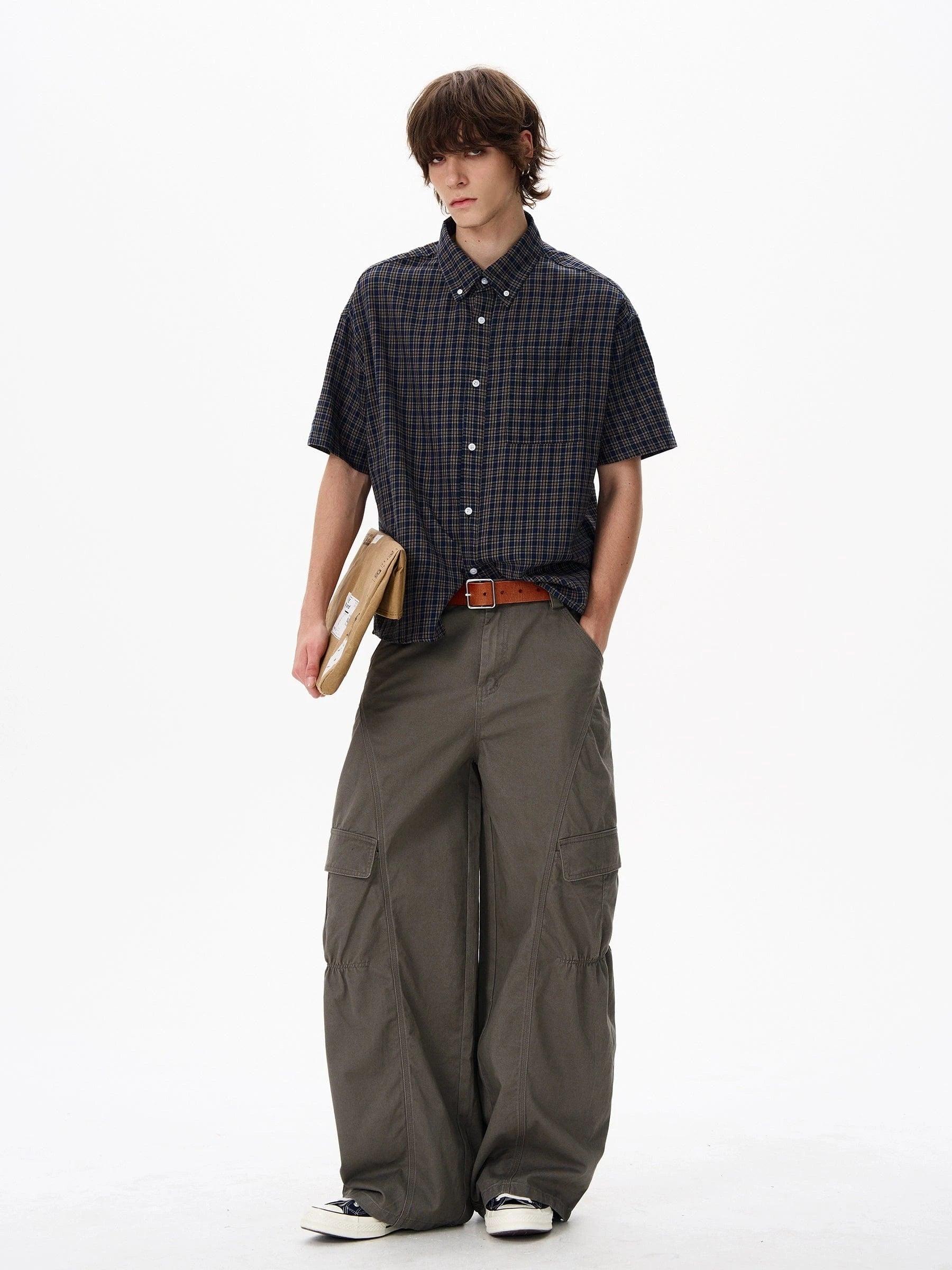 RT No. 18616 PLAID BUTTON-UP SHORT SLEEVE SHIRT