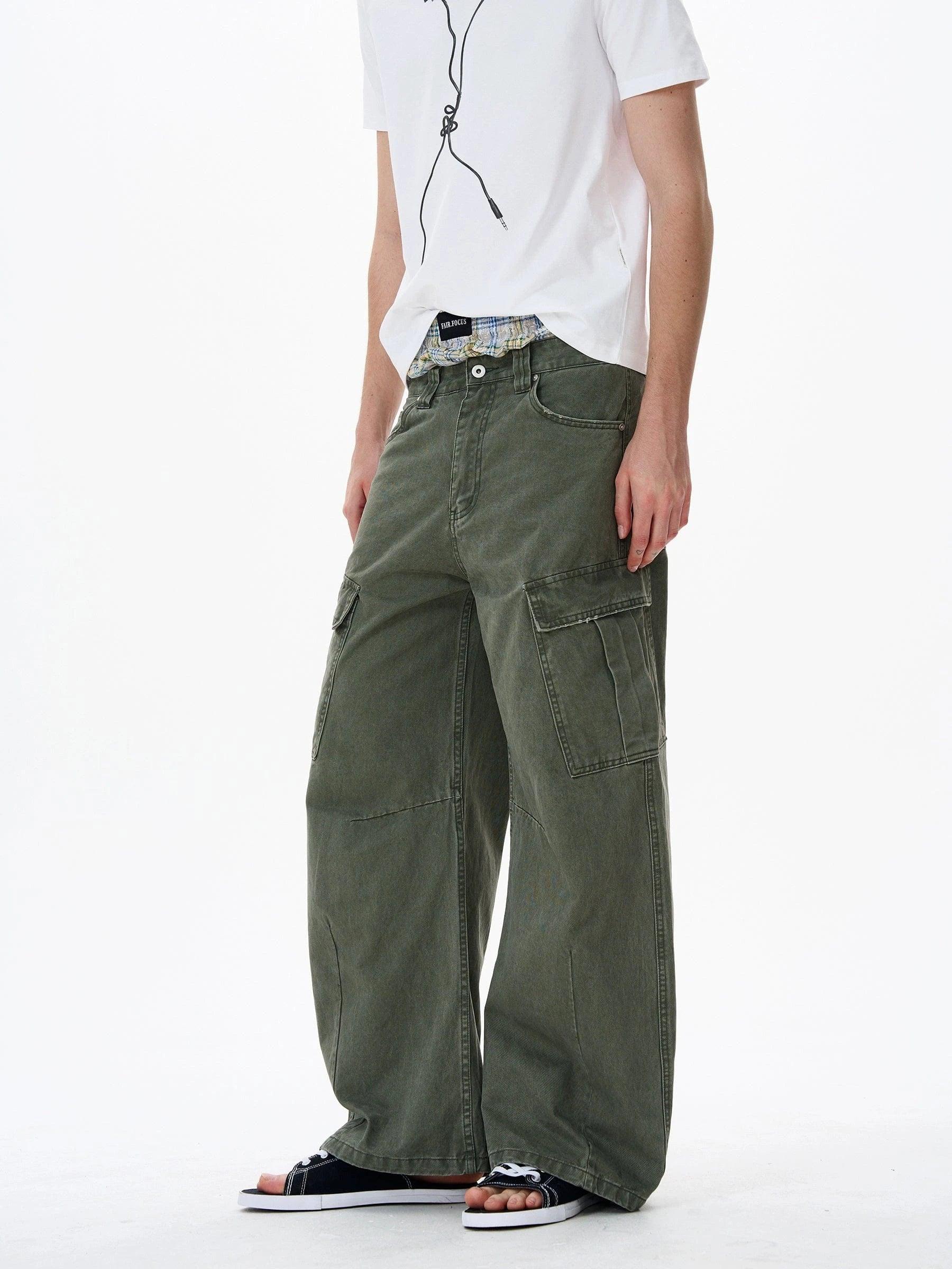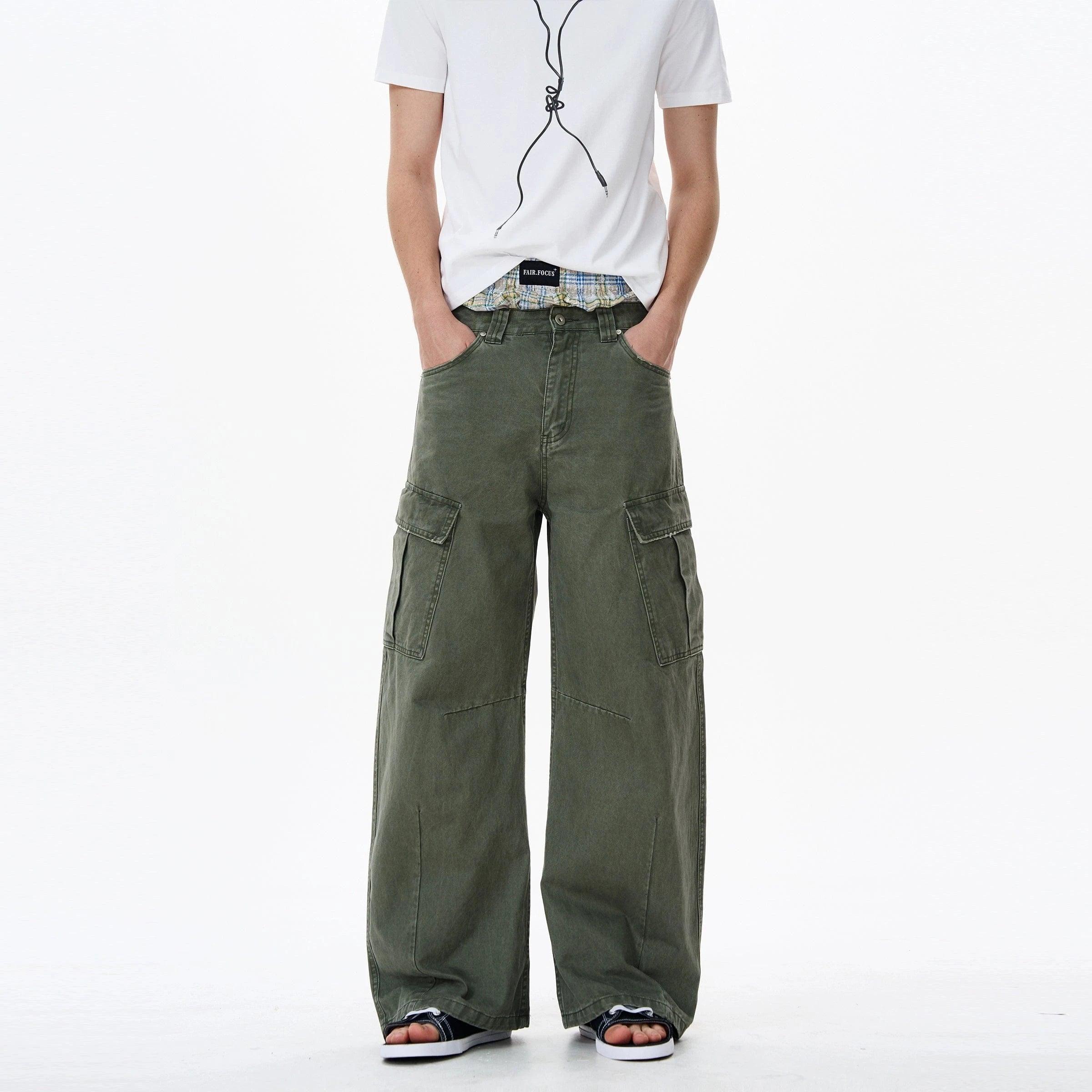 Trendy American Retro Washed Wide-Leg Cargo Logging Pants