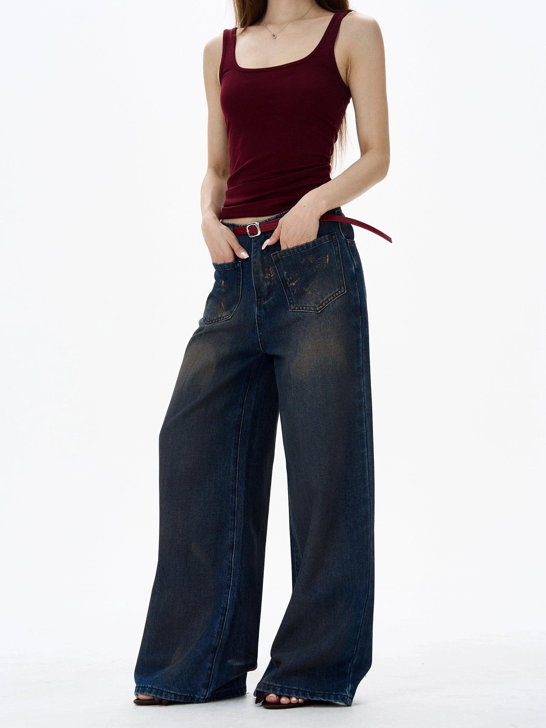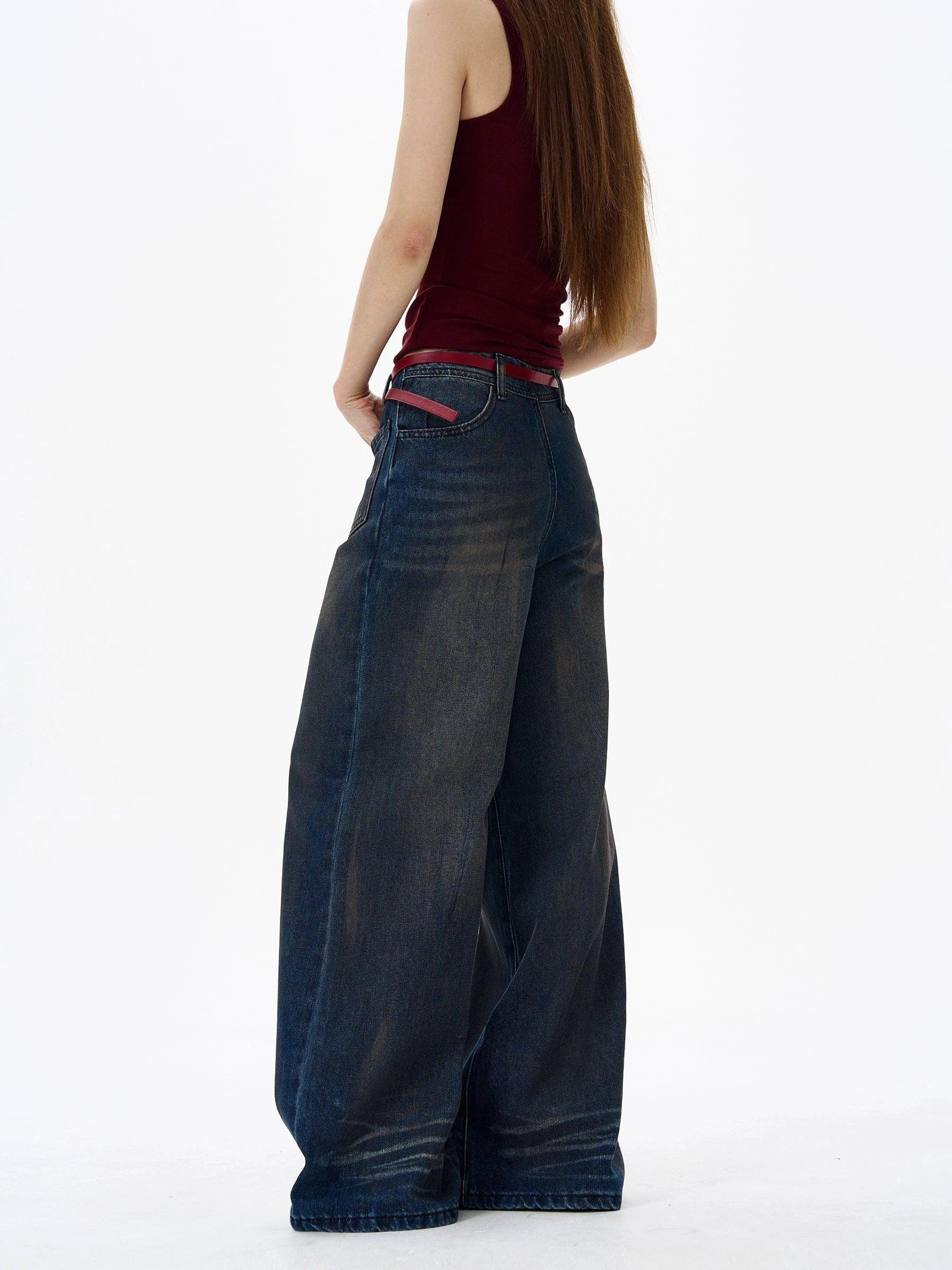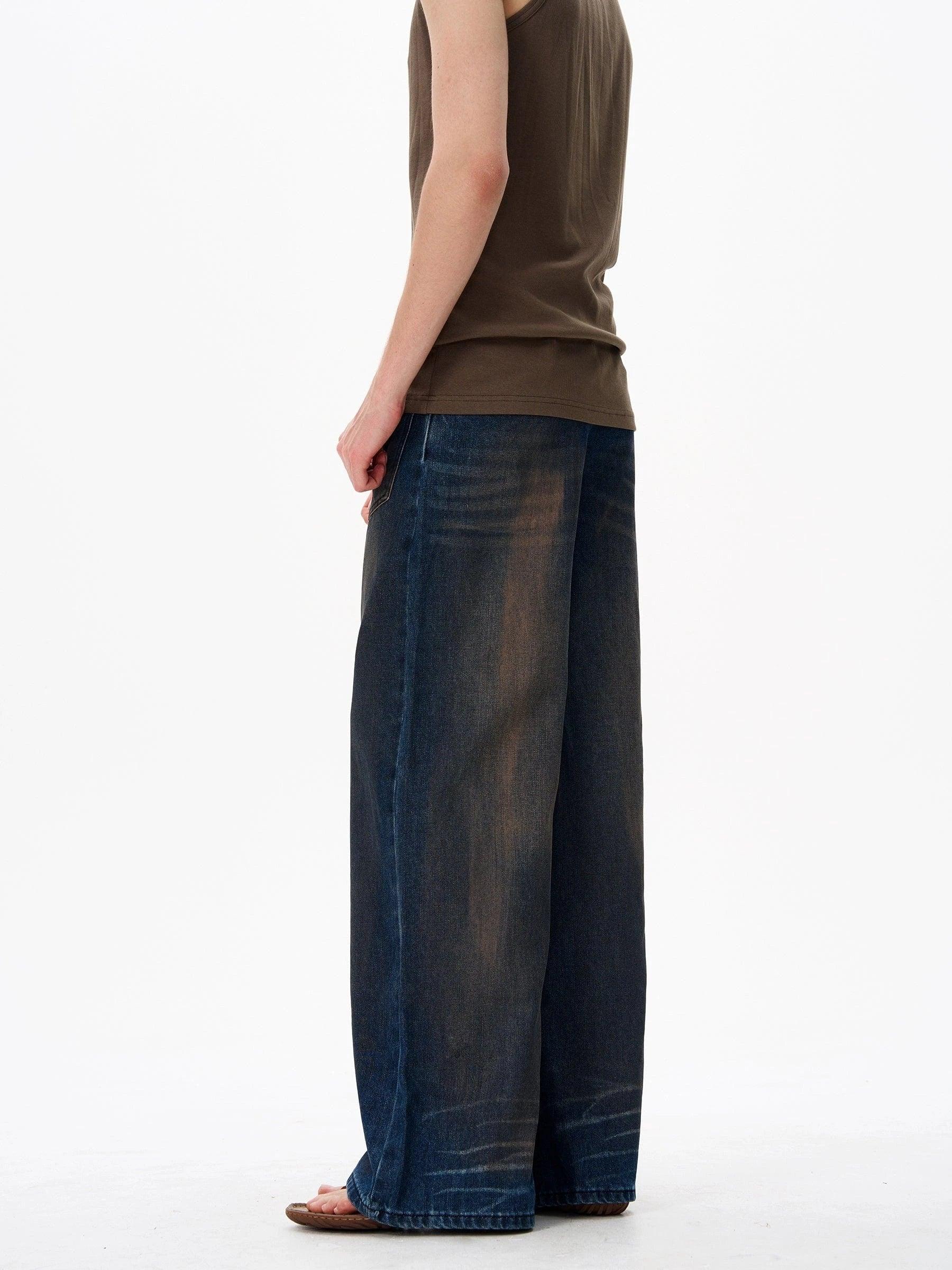 RT No. 18146 WASHED DARK BLUE DENIM STRAIGHT JEANS
