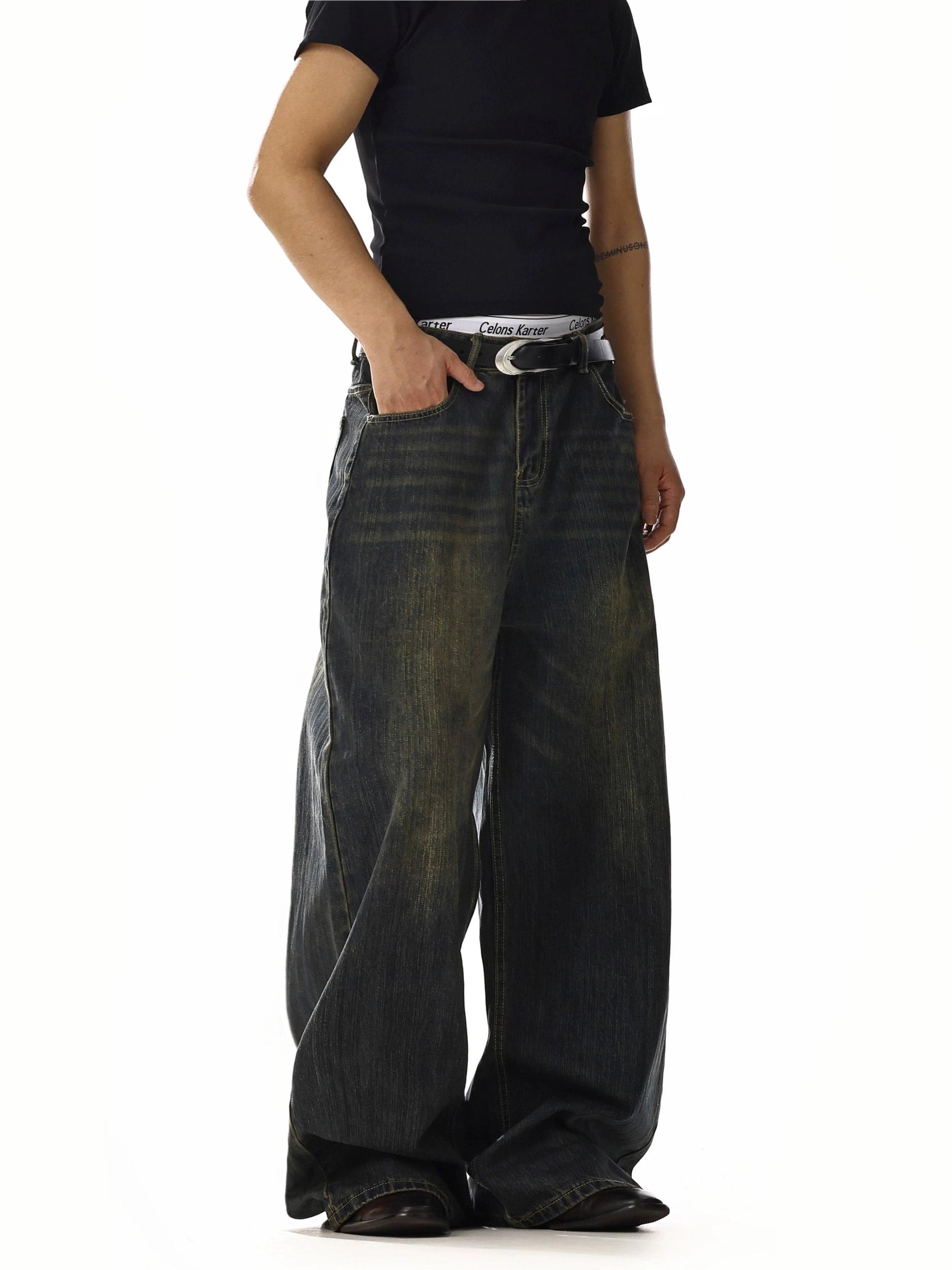 RT No. 18040 BLUE DENIM WIDE STRAIGHT JEANS Unisex