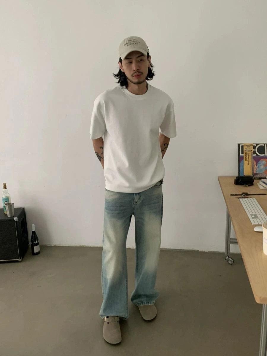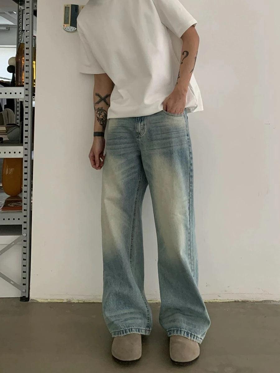 RT No. 18040 BLUE DENIM WIDE STRAIGHT JEANS Unisex