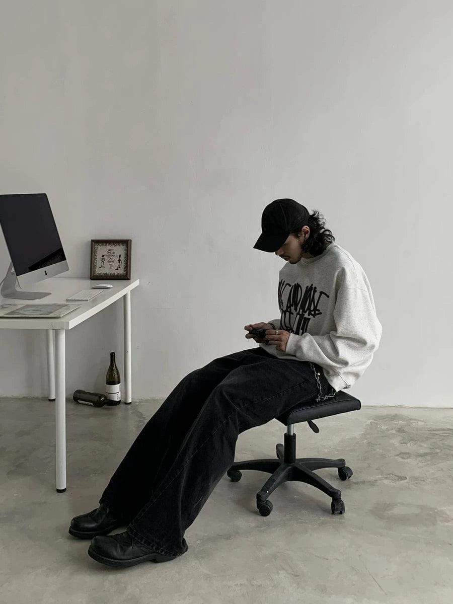 Model is 6ft (185cm) tall, 159 lbs(72kg) weight and wearing a size XXL 160cm 42.5kg wearing size S - OLD BLACK- DENIM- Wide straight fit