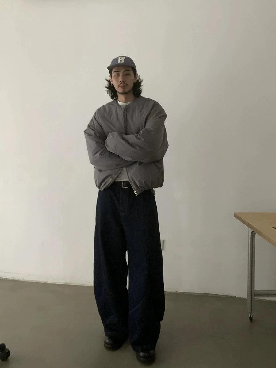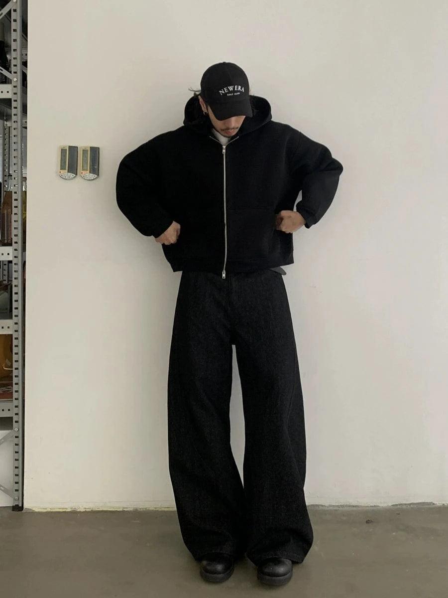 Model is 6ft (185cm) tall, 159 lbs(72kg) weight and wearing a size XL 160cm 42.5kg wearing size S - Wide straight fit- Scimitar style- DENIM- 2 colors