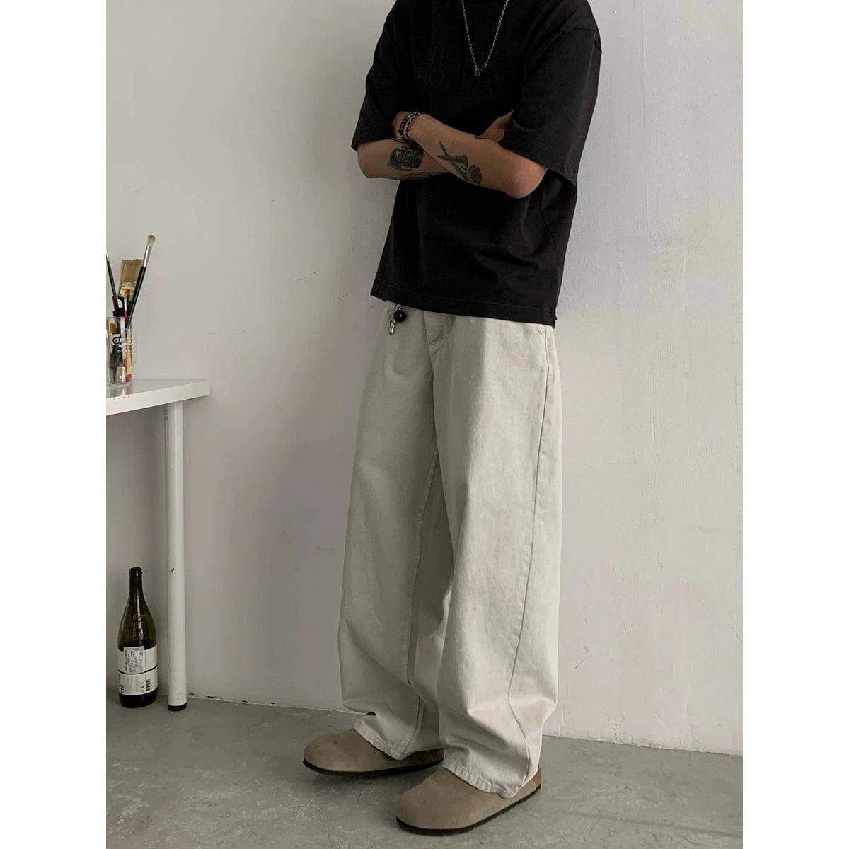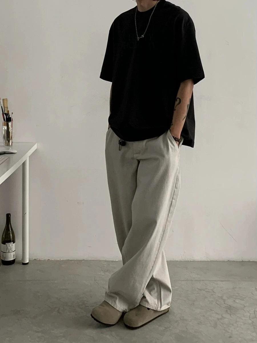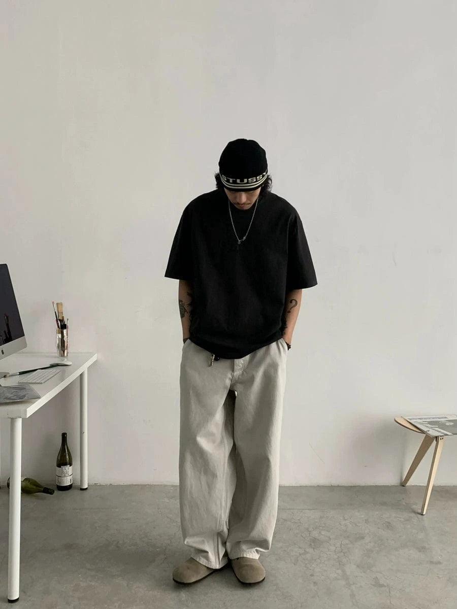 Model is 6ft (185cm) tall, 159 lbs(72kg) weight and wearing a size XL 160cm 42.5kg wearing size S - Wide straight fit- Essential- Drape style- 2 colors