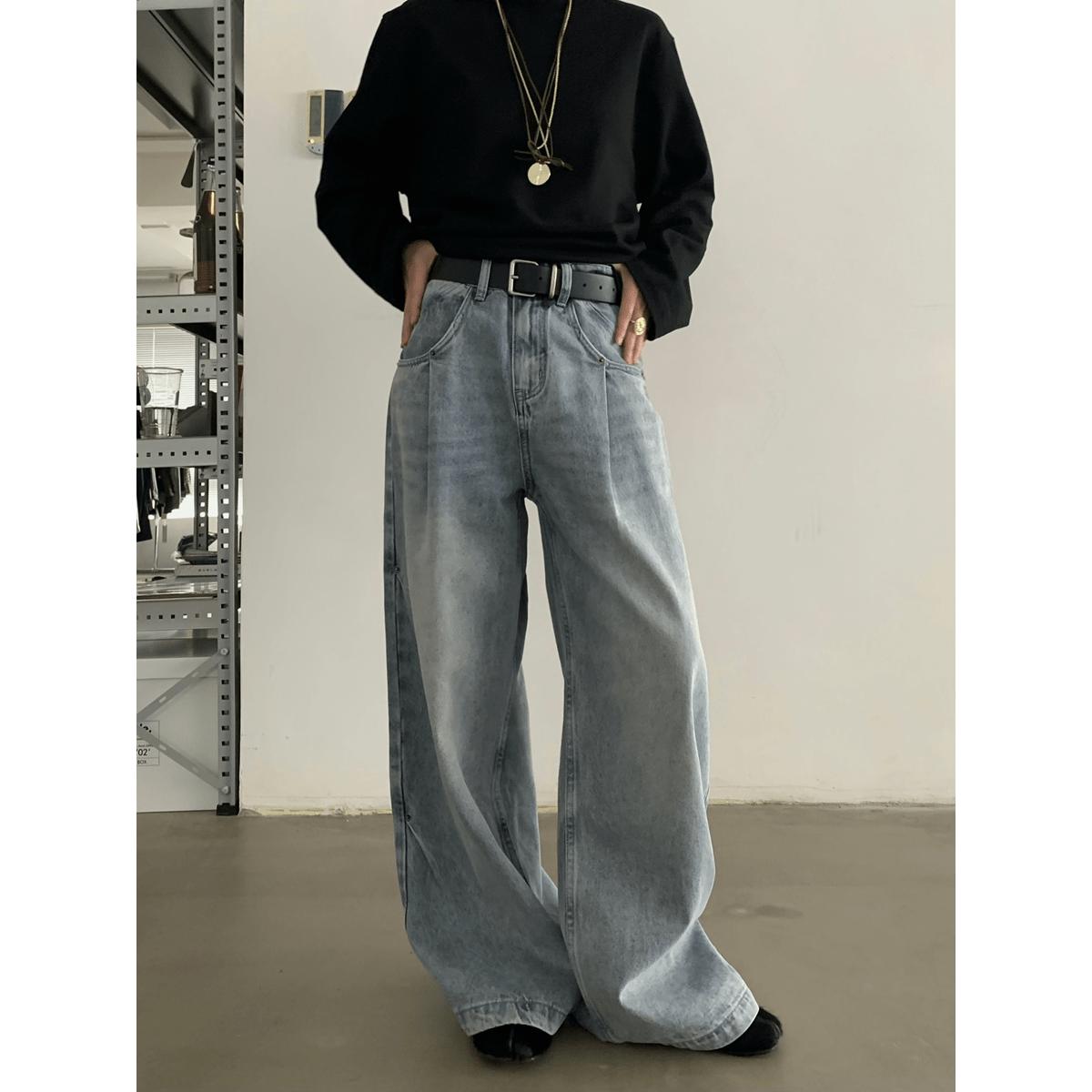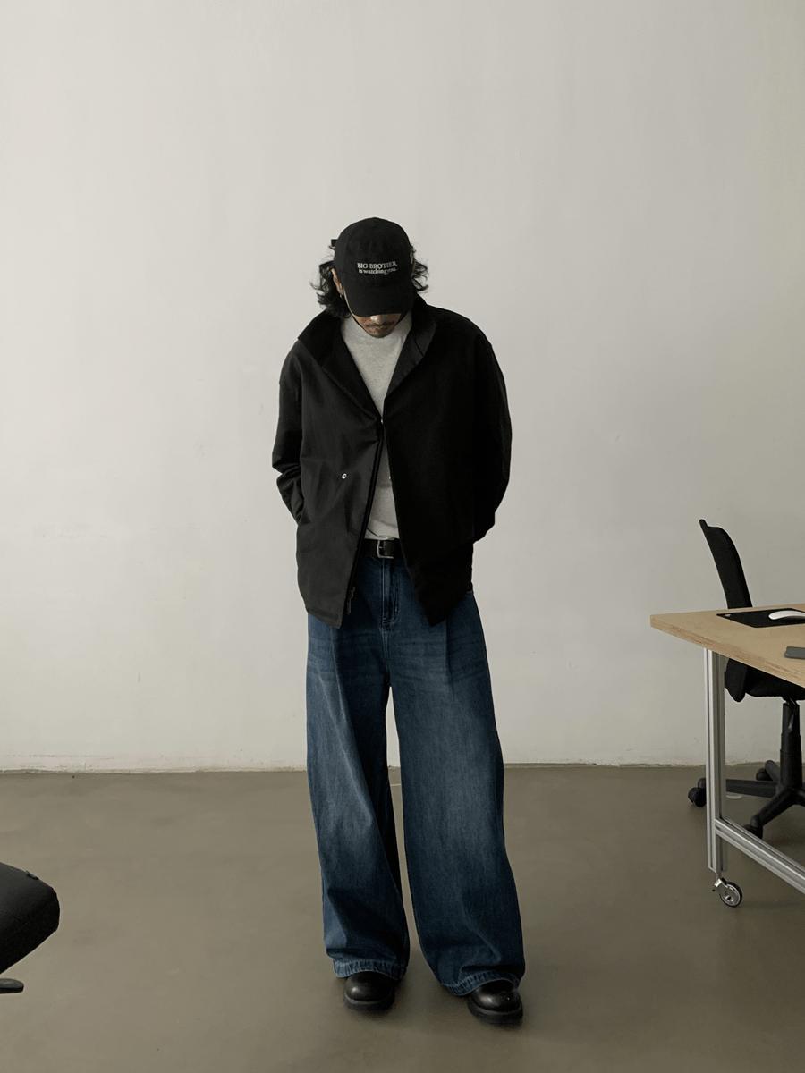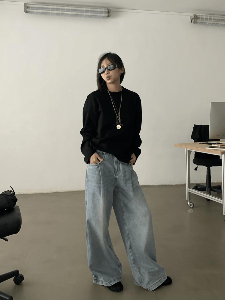 Model is 6ft (185cm) tall, 159 lbs(72kg) weight and wearing a size XL 160cm 42.5kg wearing size S - PLEATED- Baggy style- Straight fit- DENIM - 2 colors