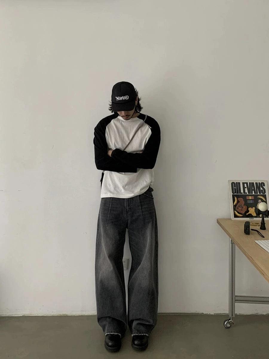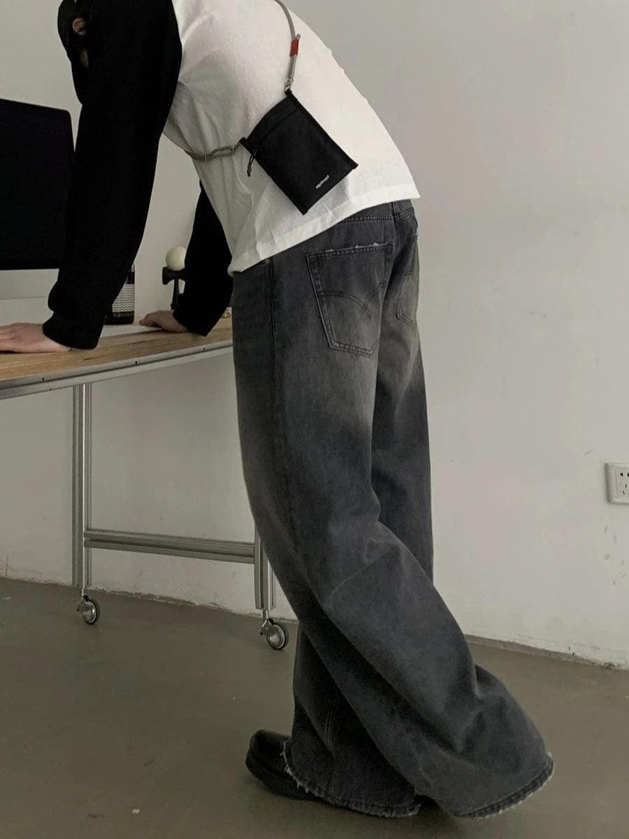 RT No. 18823 DARK GRAY BAGGY STRAIGHT JEANS