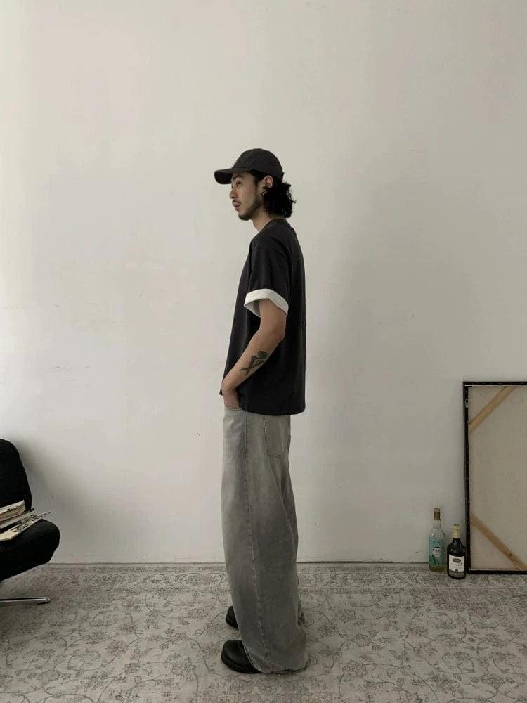 Model is 6ft (185cm) tall, 159 lbs(72kg) weight and wearing a size XXL 160cm 42.5kg wearing size S - CLOUD GRAY- Baggy style- Straight fit- DENIM