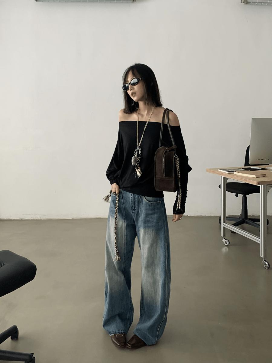 RT No. 11269 RECONSTRUCTED BAGGY STRAIGHT DENIM JEANS