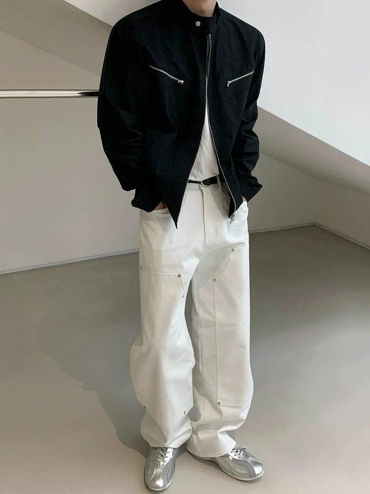 - BLACK- Zip-up- Chest zip-up- Motorcycle collar