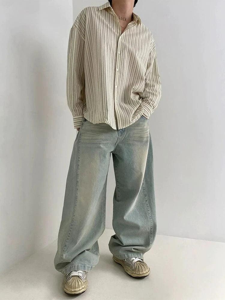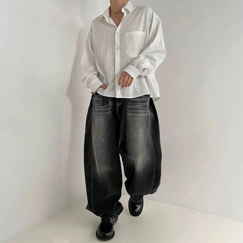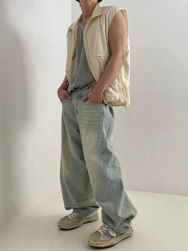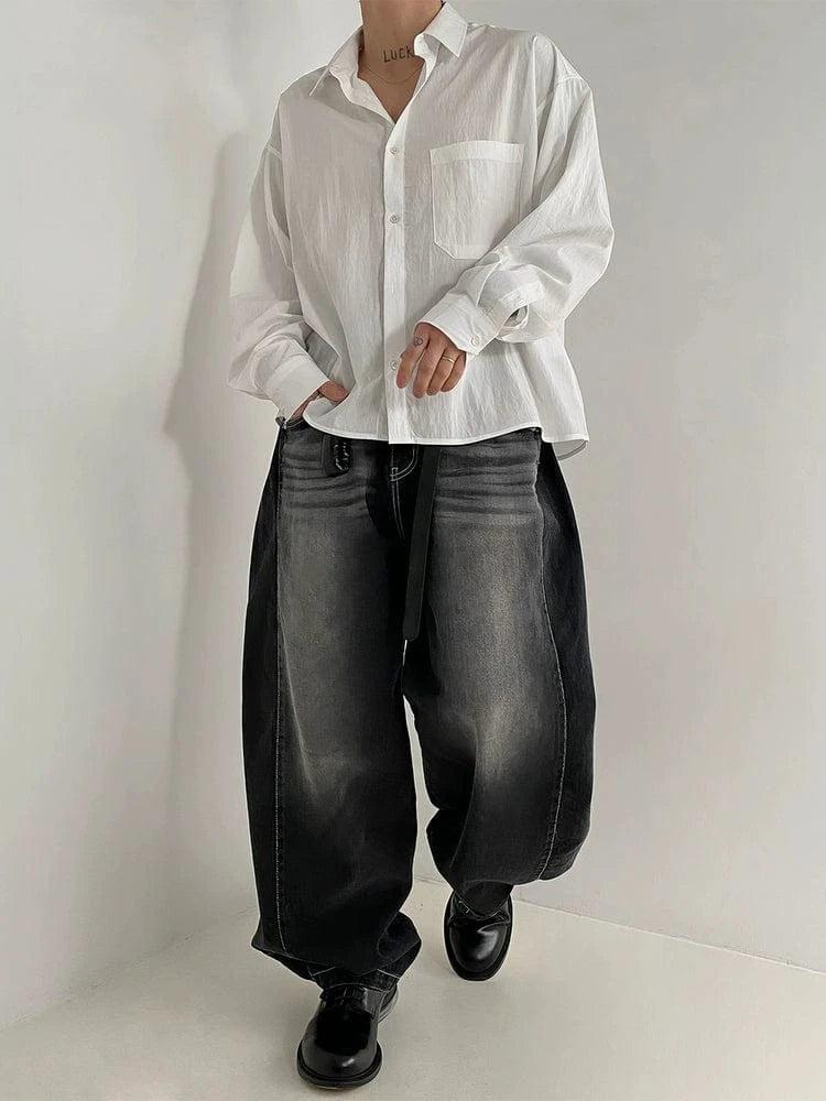 RT No. 19012 WASHED DENIM BAGGY STRAIGHT JEANS