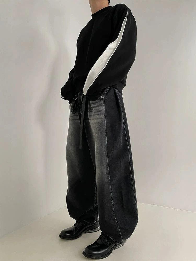 RT No. 12639 WASHED BLACK BAGGY STRAIGHT JEANS Unisex