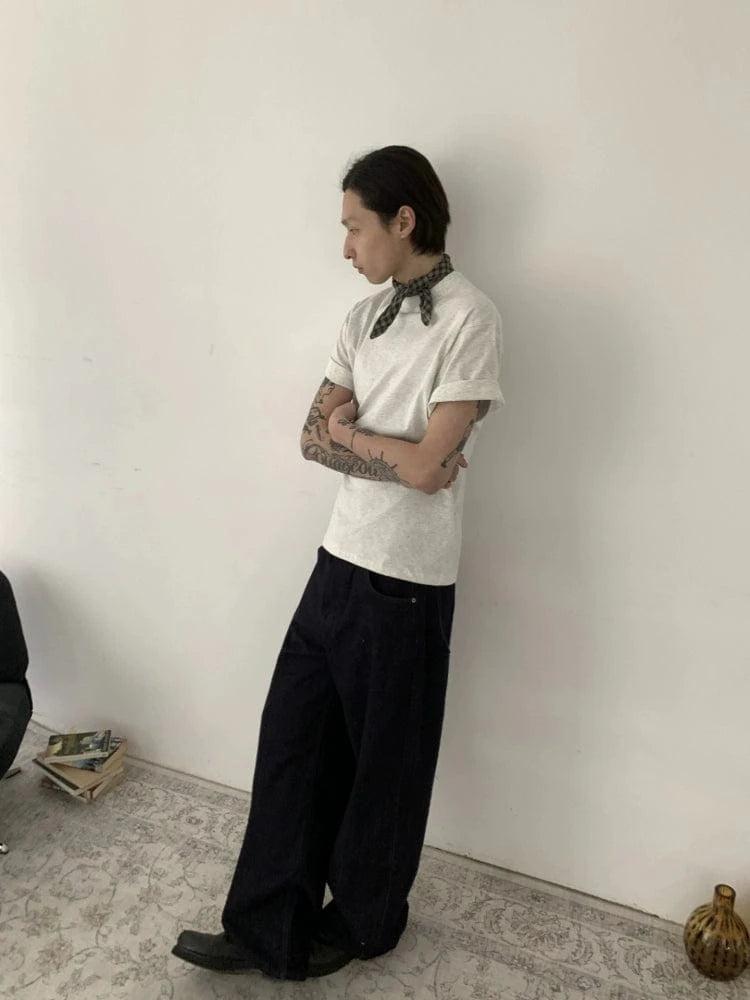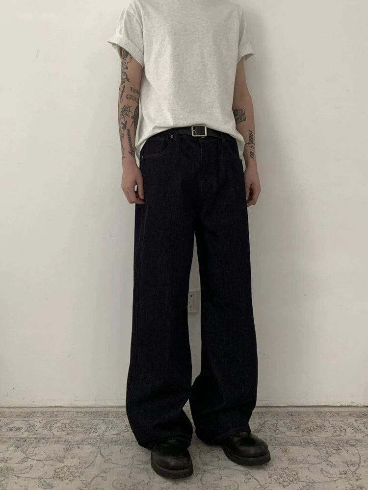 RT No. 18040 BLUE DENIM WIDE STRAIGHT JEANS Unisex