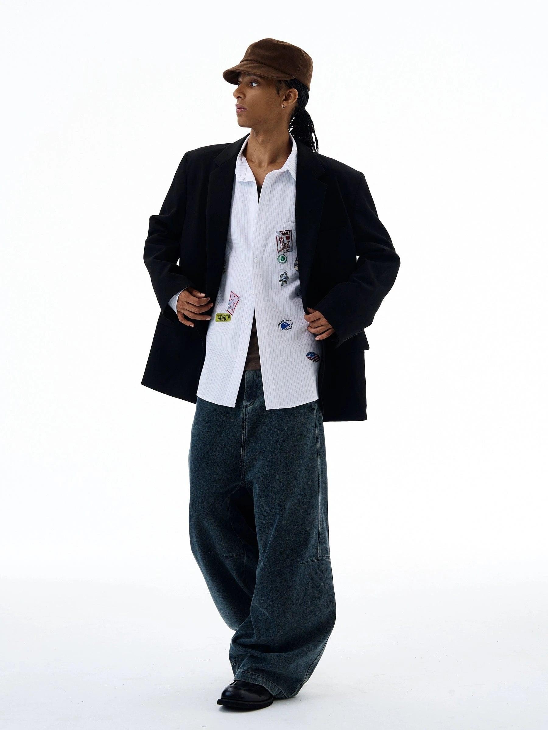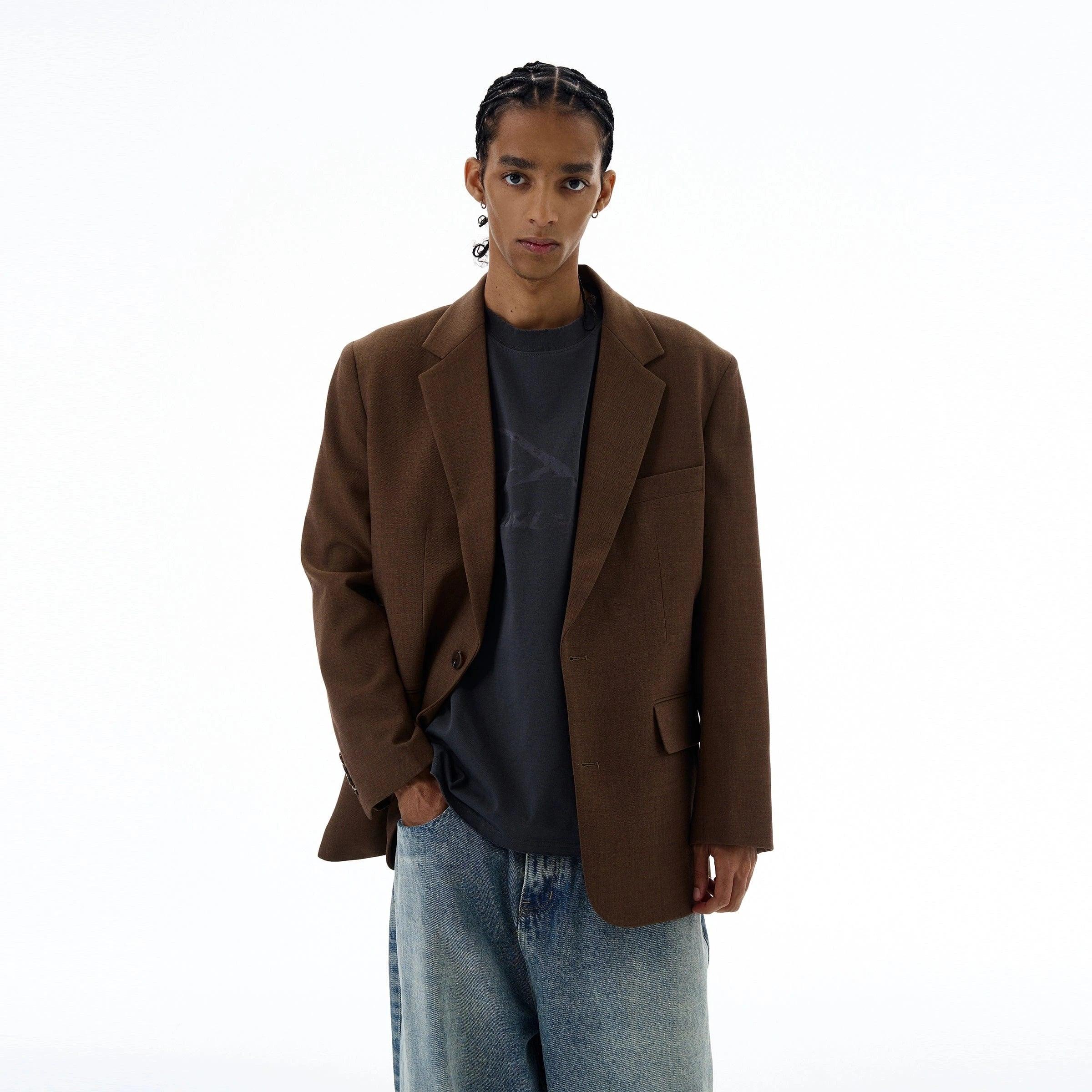 Model is 5ft 10''(178cm) tall, 145 lbs(66kg) weight and wearing a size L168cm 59kg wearing a size M - BLAZER - Suit style- Loose fit- 2 colors