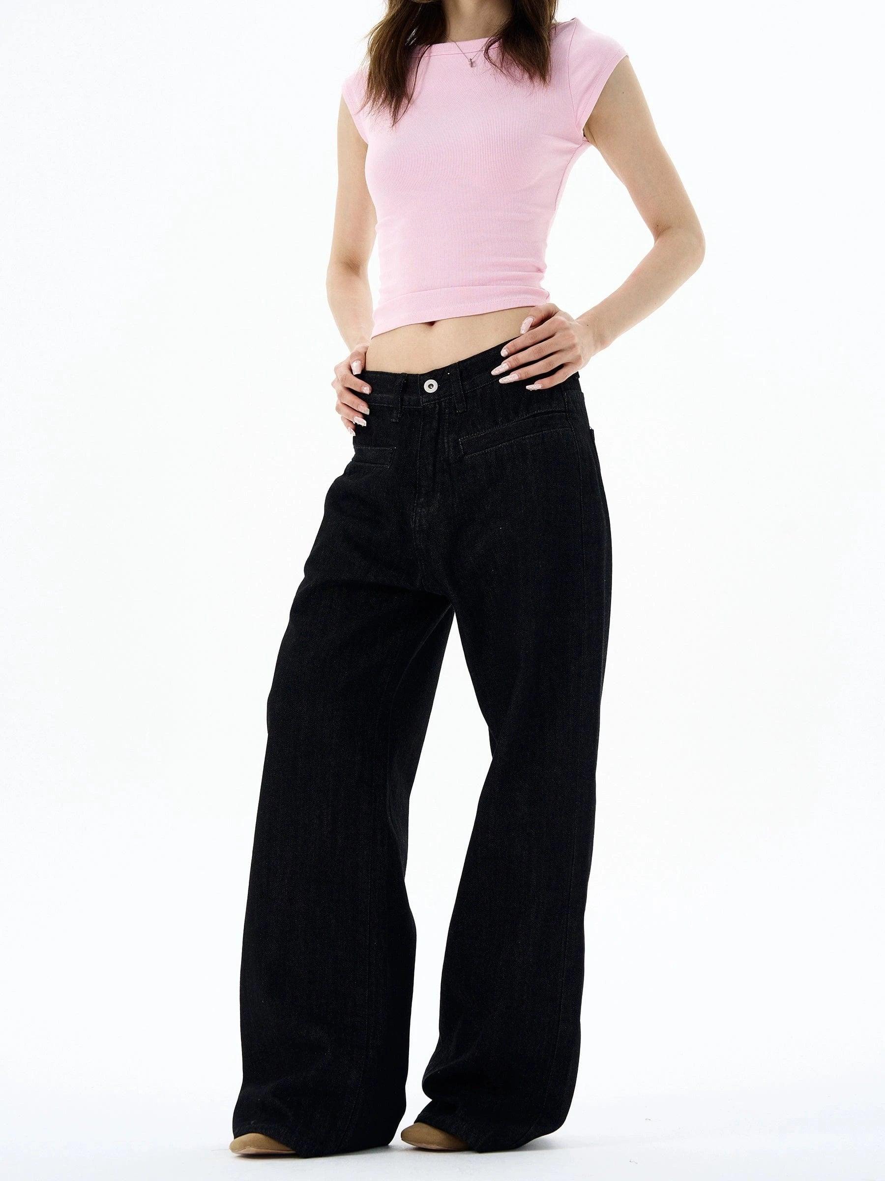 RT No. 19804 BLACK WIDE STRAIGHT DENIM JEANS