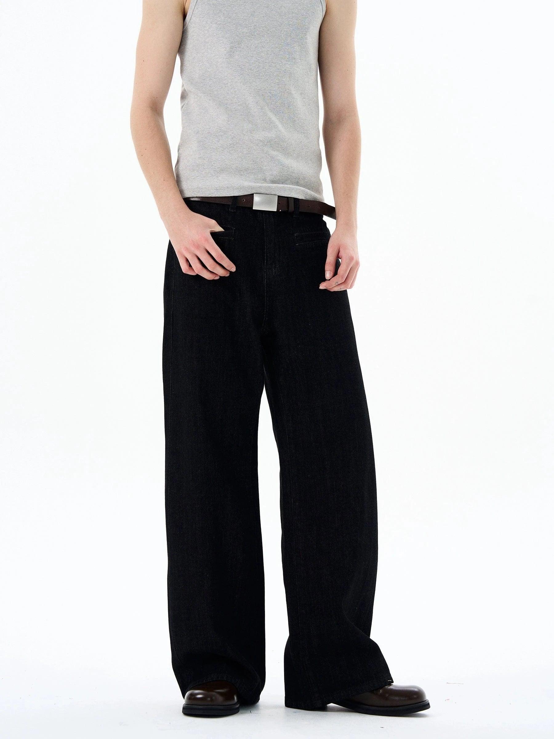 RT No. 18522 WASHED BLACK WIDE STRAIGHT DENIM JEANS