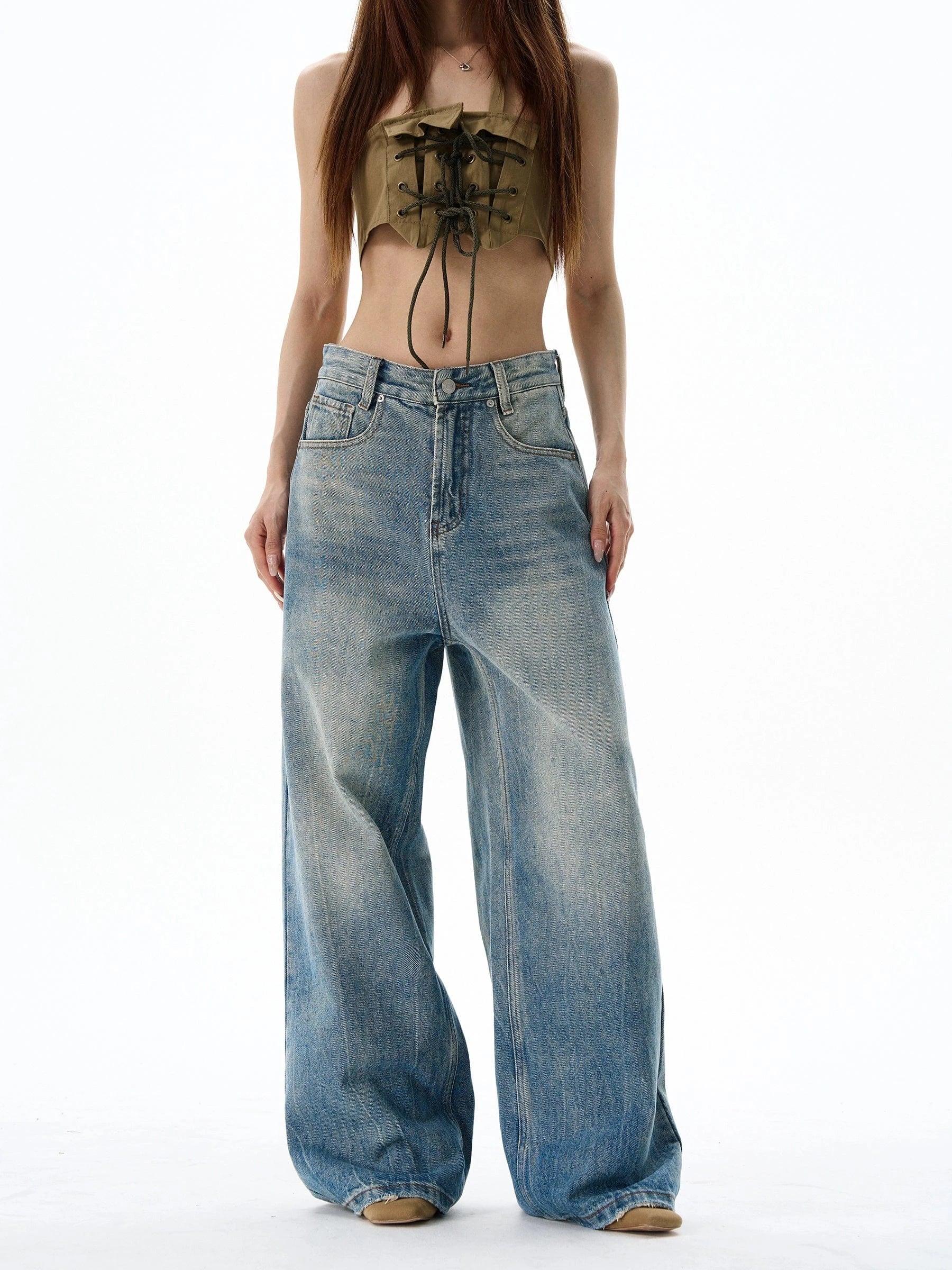 RT No. 19582 WASHED BLUE DENIM STRAIGHT JEANS