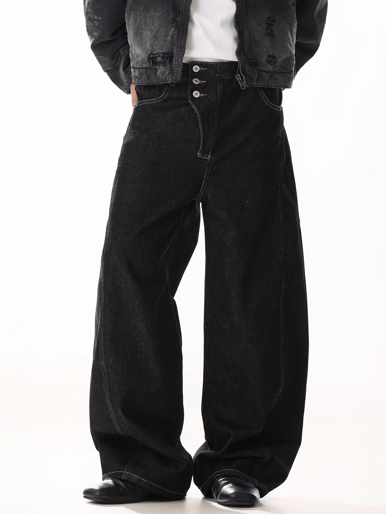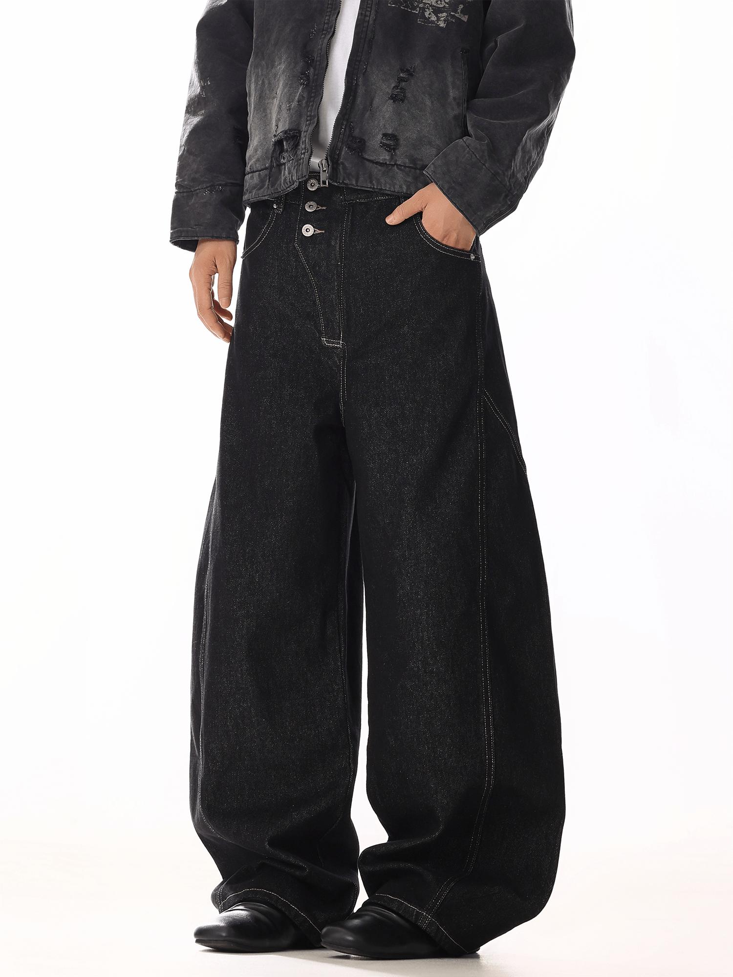 RT No. 19808 BLACK WHISKER BAGGY DENIM JEANS