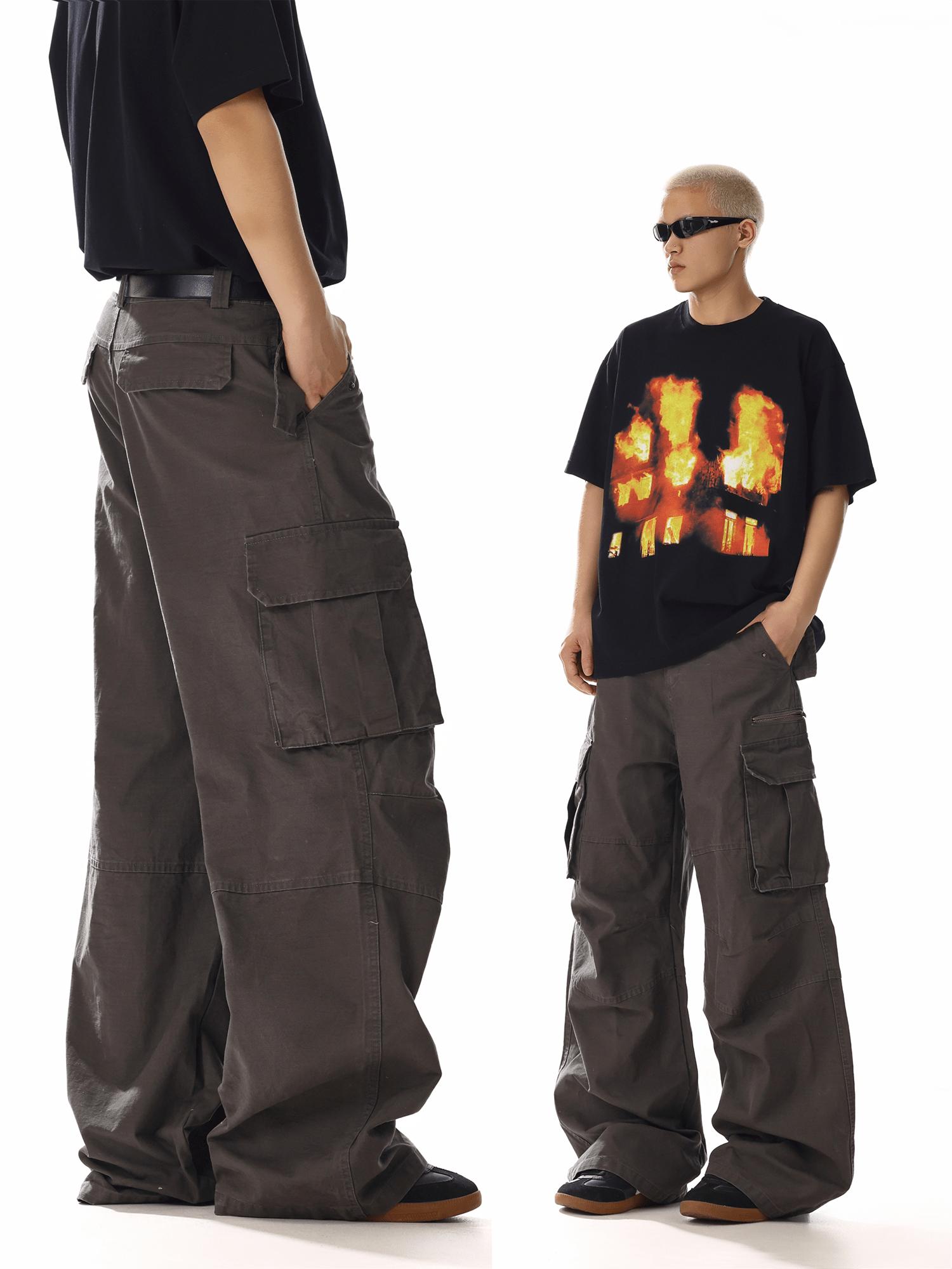 RT No. 10830 BROWN WIDE STRAIGHT CARGO PANTS