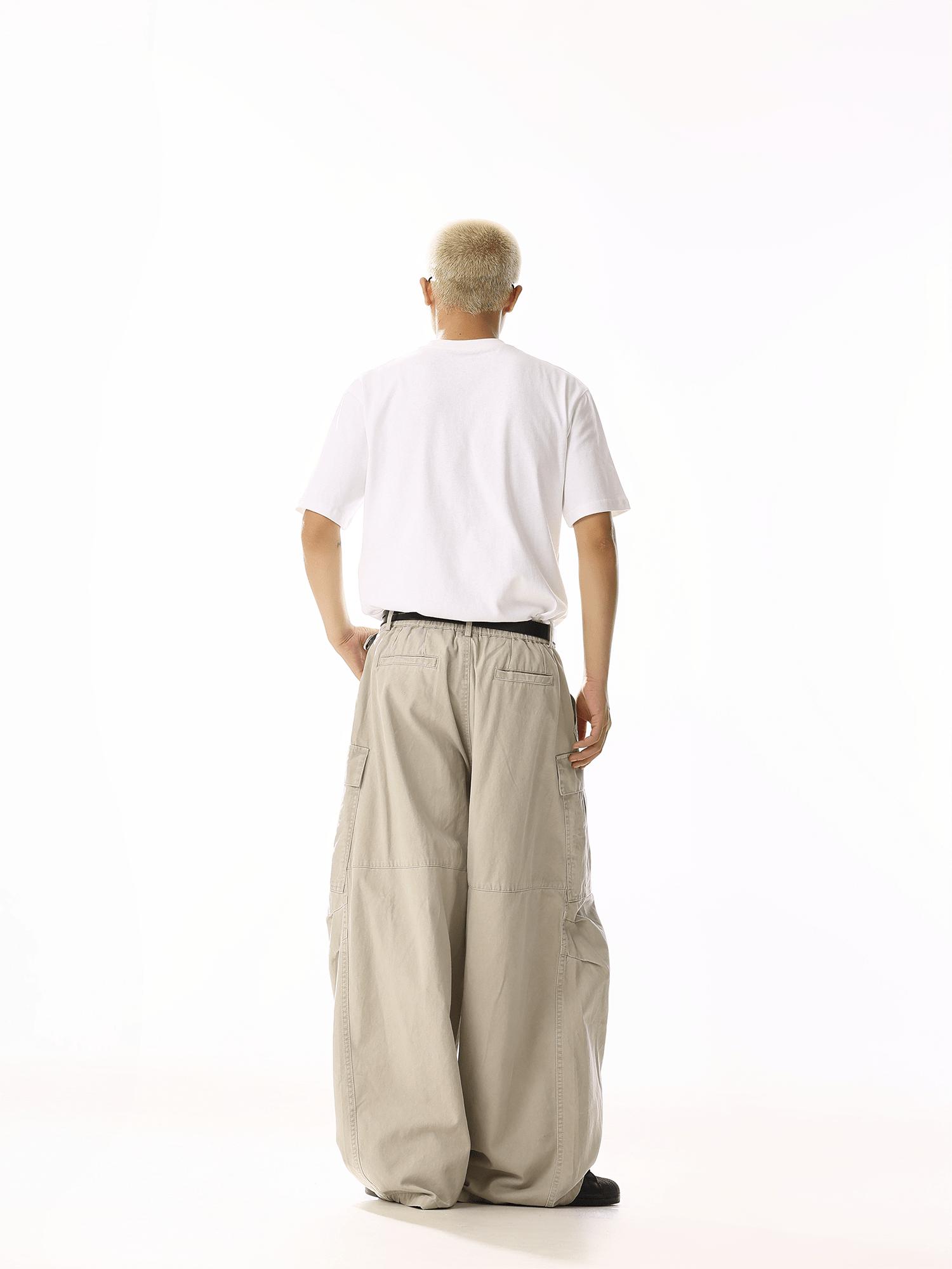 RT No. 19839 CREAM BAGGY STRAIGHT CARGO PANTS