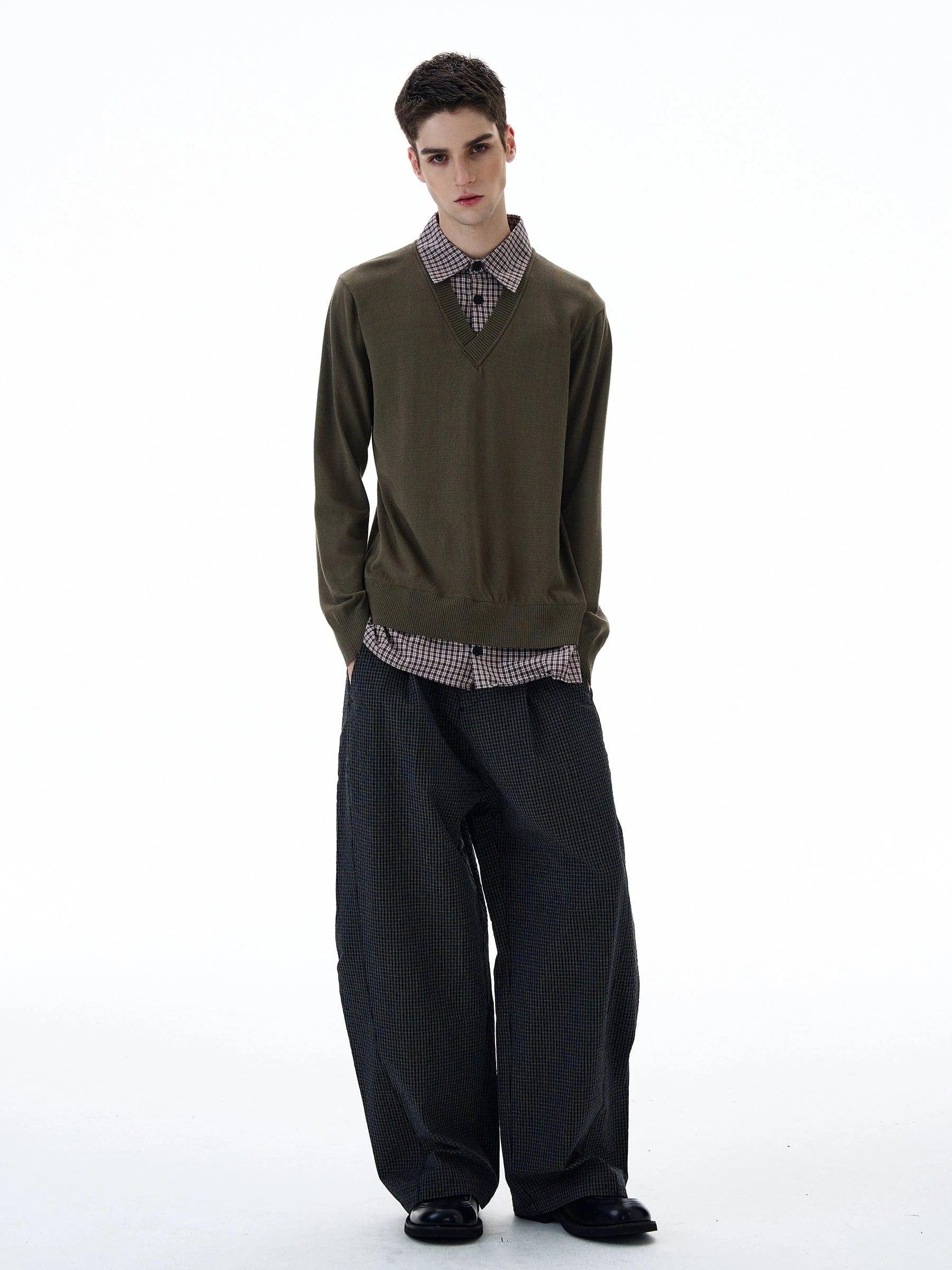 RT No. 20008 TWO PIECE BUTTON-UP SHIRT V-NECK SWEATER