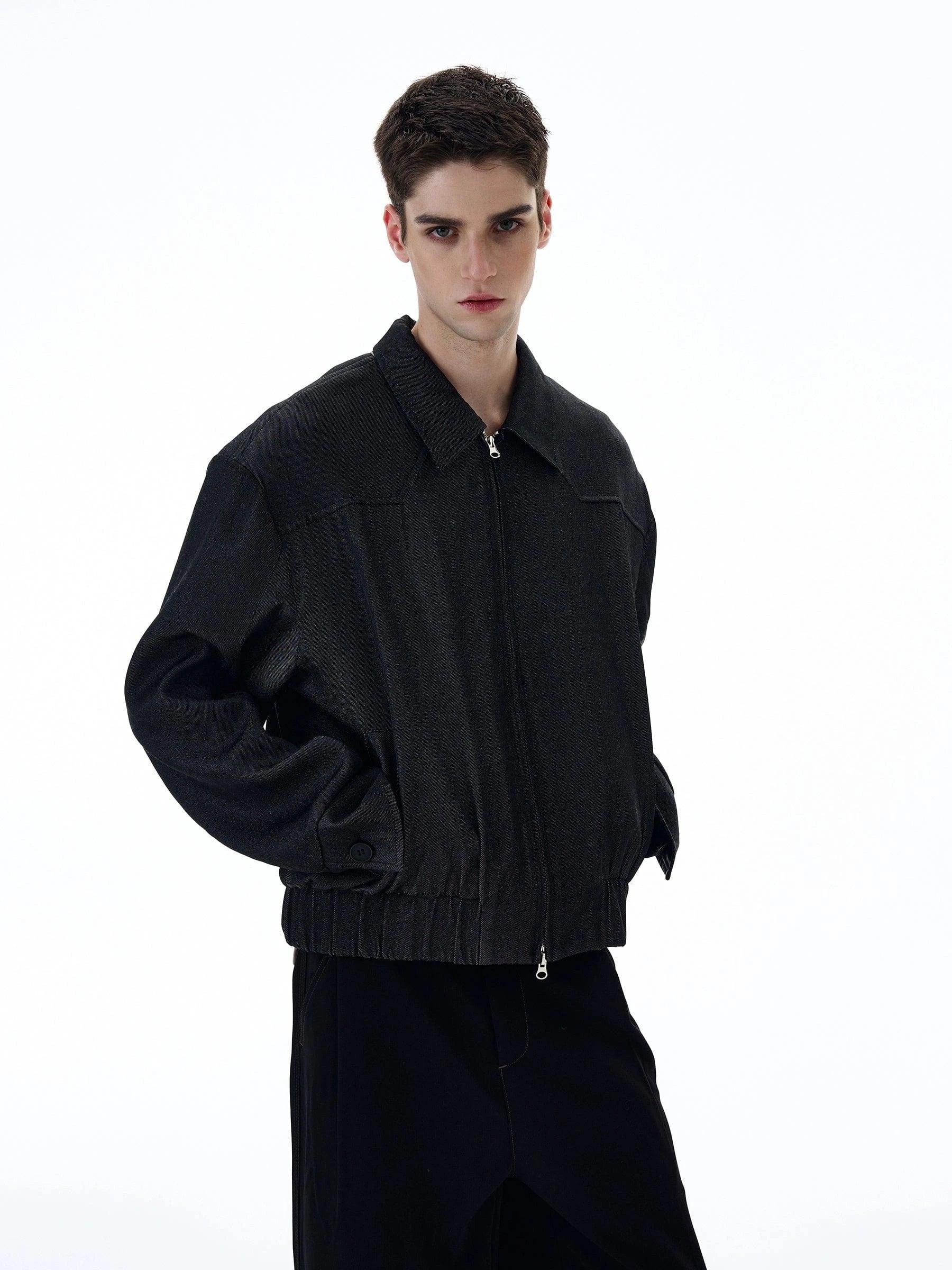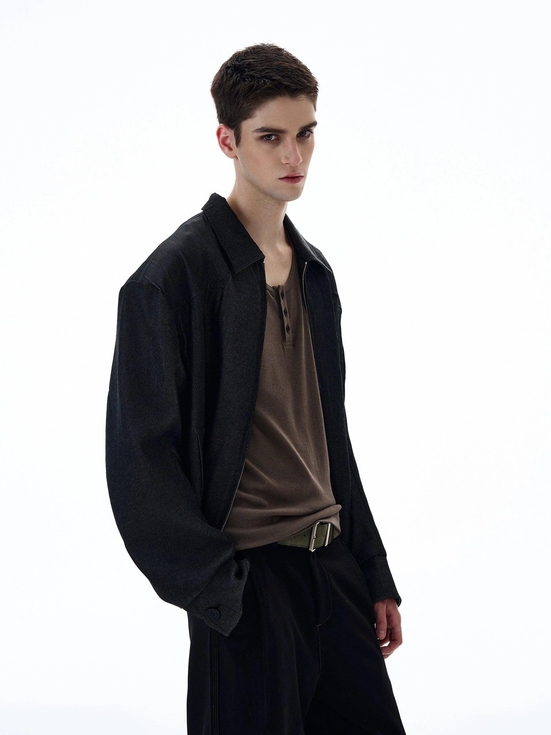 Model is 5ft 10''(178cm) tall, 145 lbs(66kg) weight and wearing a size L168cm 59kg wearing a size M - OKANE style- BLACK- Zip-up- DROP SHOULDER