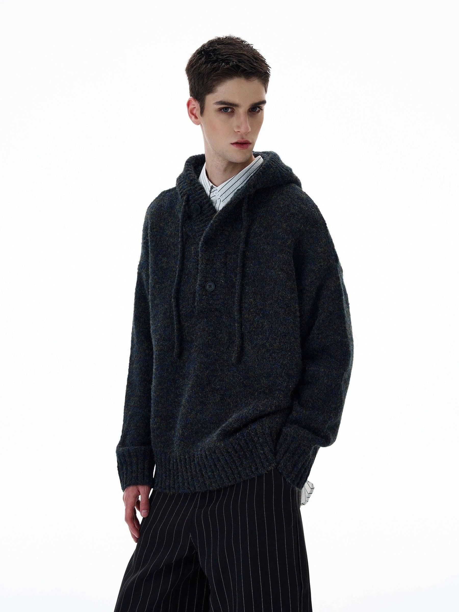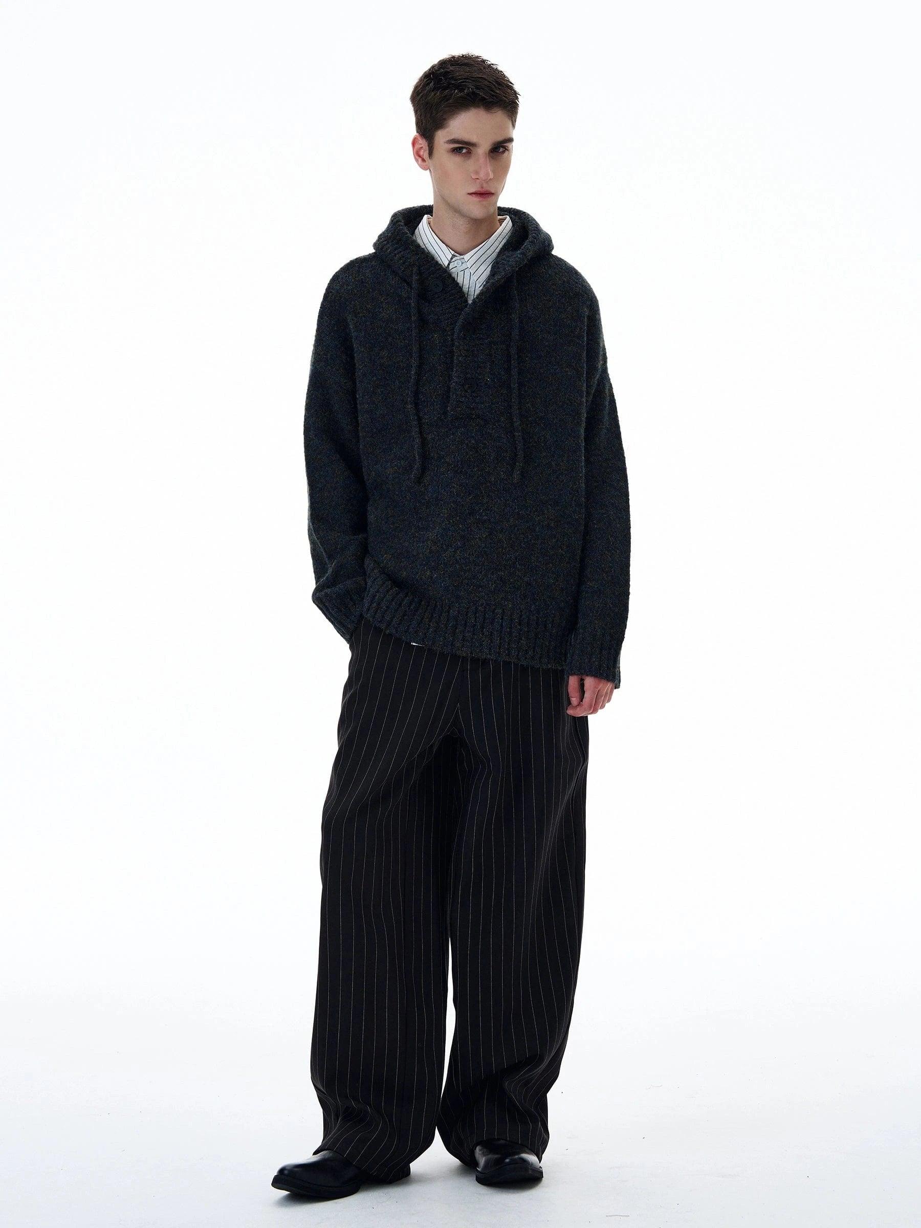 Model is 5ft 10''(178cm) tall, 145 lbs(66kg) weight and wearing a size L168cm 59kg wearing a size M - Knitted- Pullover- ASH- HOODED