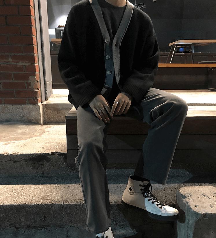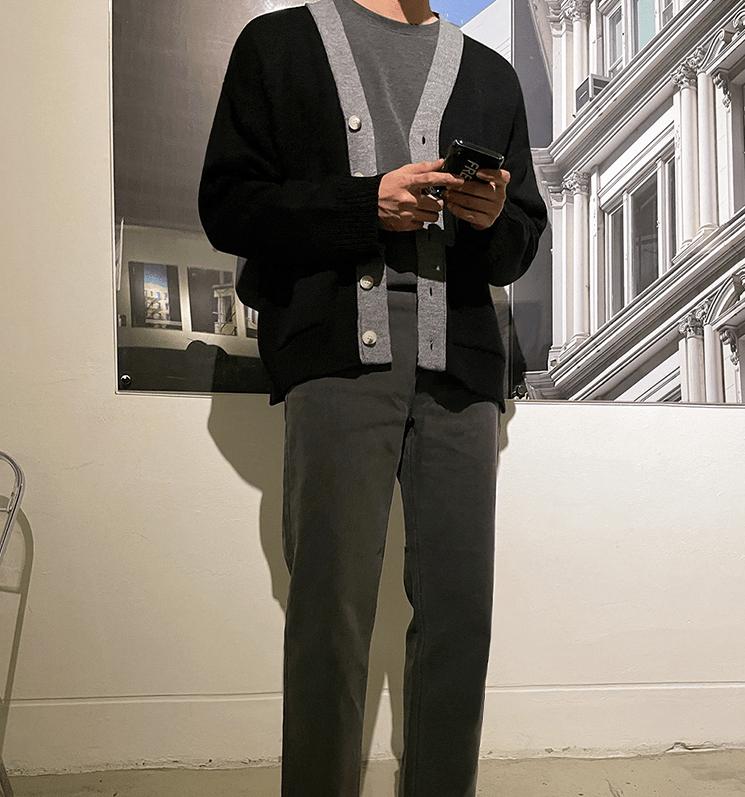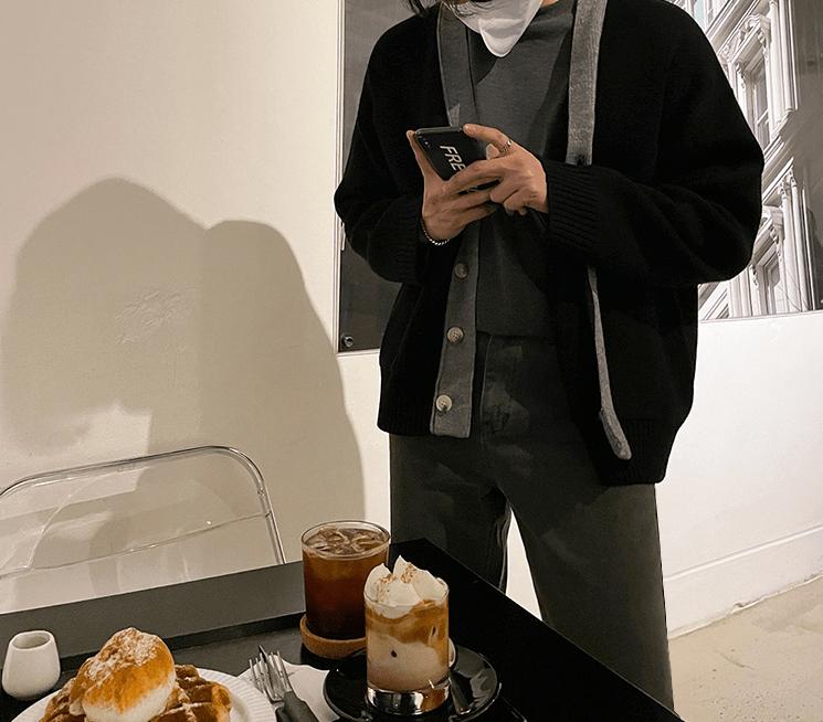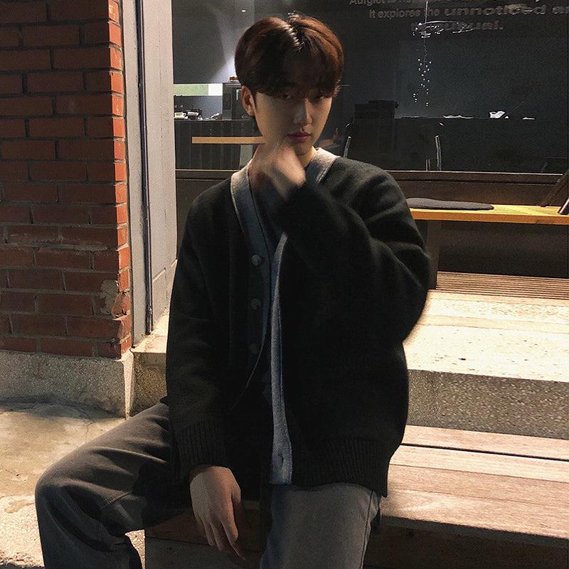 - Knitted- V-Neck- Button-Up- Black