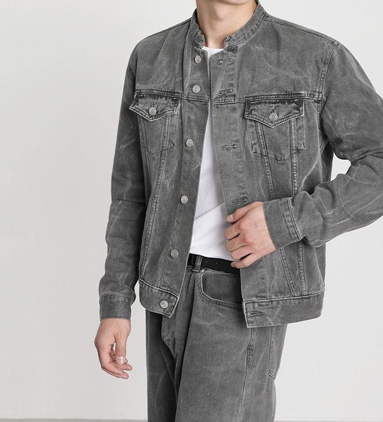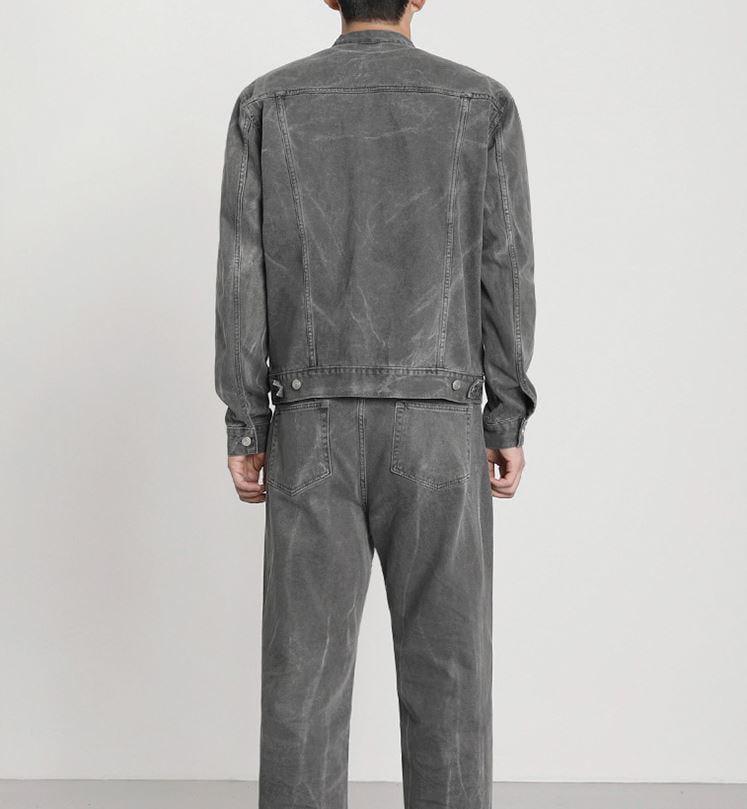 - sold separately - Cotton 65%- Polyester 35%- GRAY- Mandarin collar (TOP)- Wide straight fit (BOTTOM)- Button-up JK