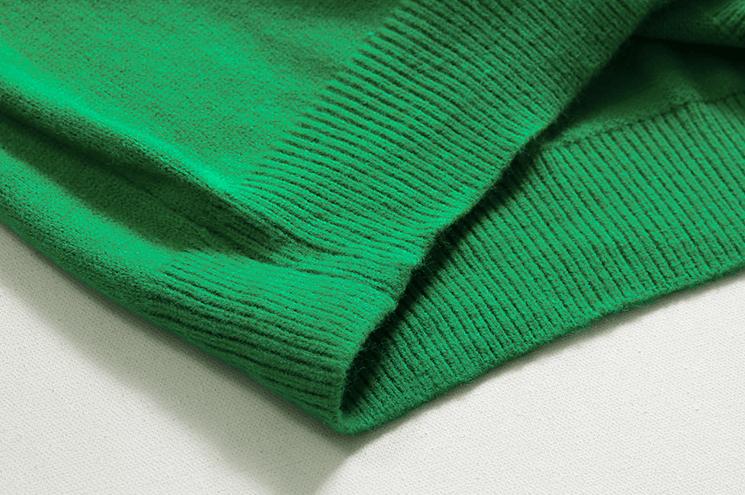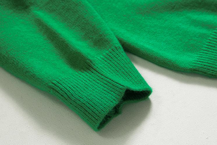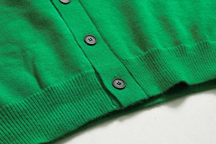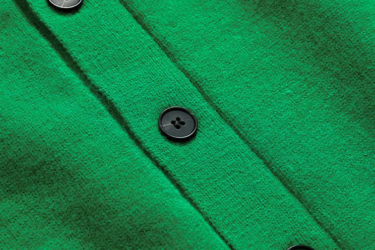 - GREEN- Knitted- Dropped shoulder sleeve- V-Neck- Button-up- Loose fit