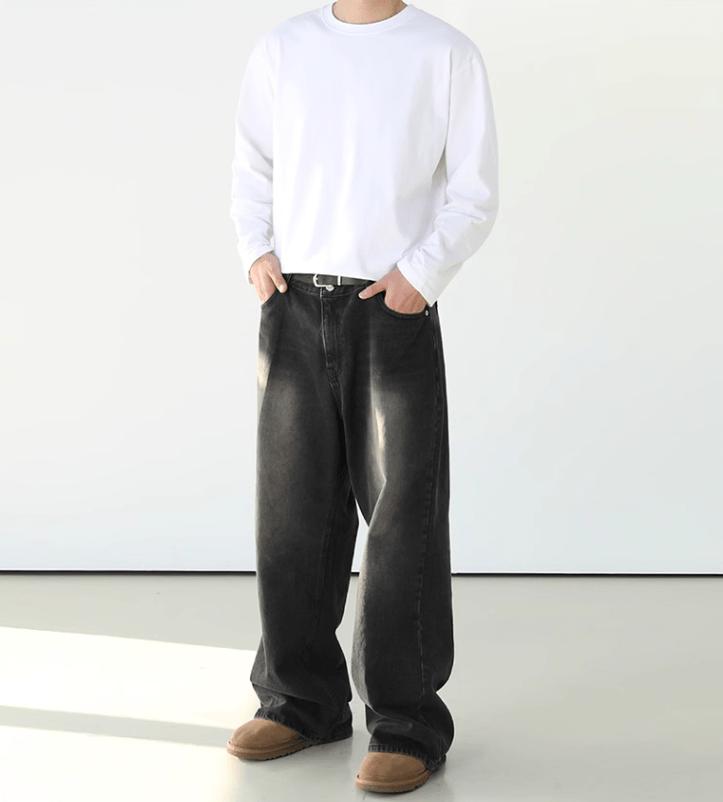 - WASHED BLACK- Wide straight fit- Baggy style- Denim