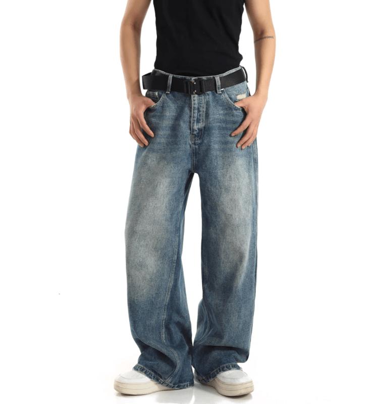 RT No. 12577 WASHED BLUE STRAIGHT DENIM JEANS Unisex