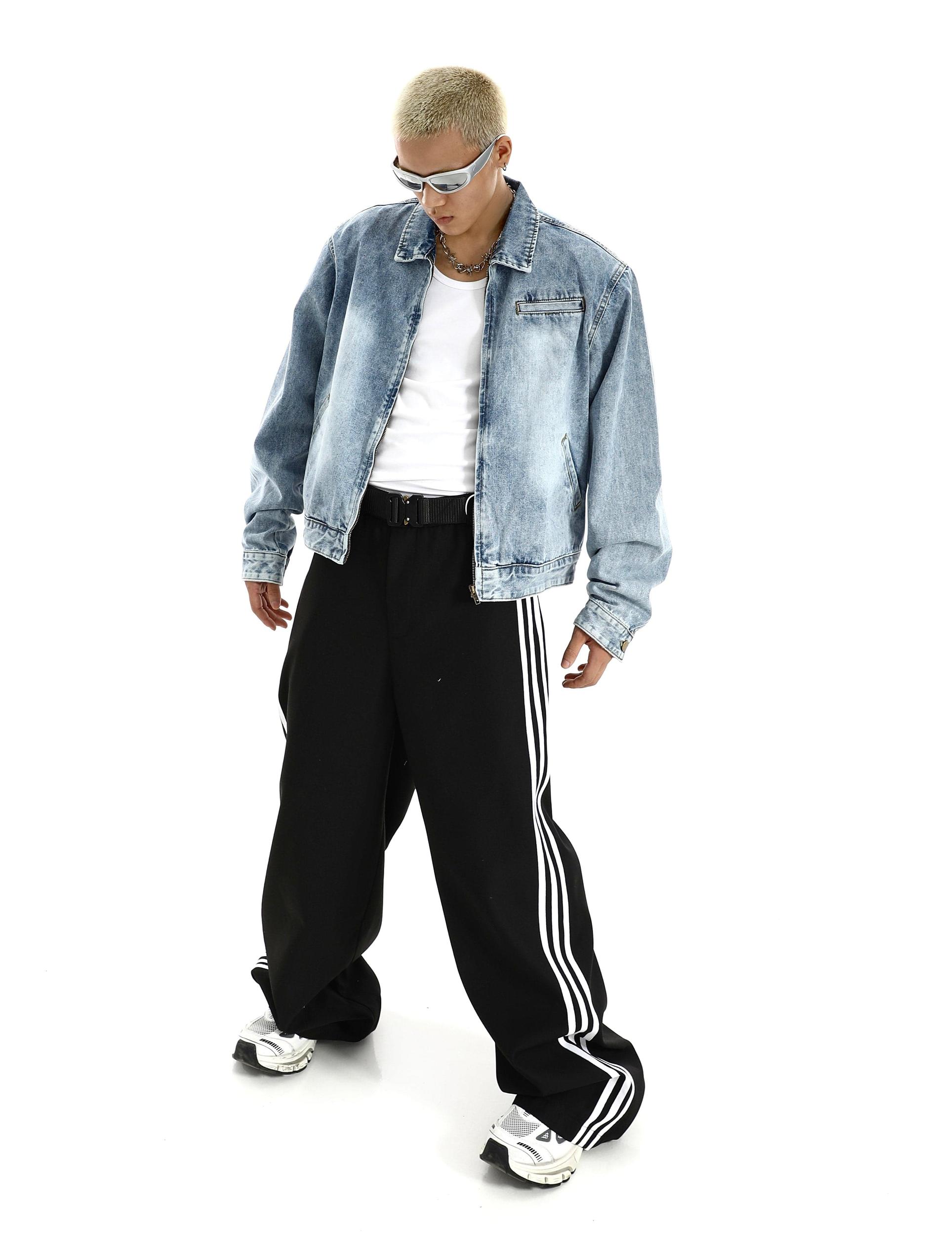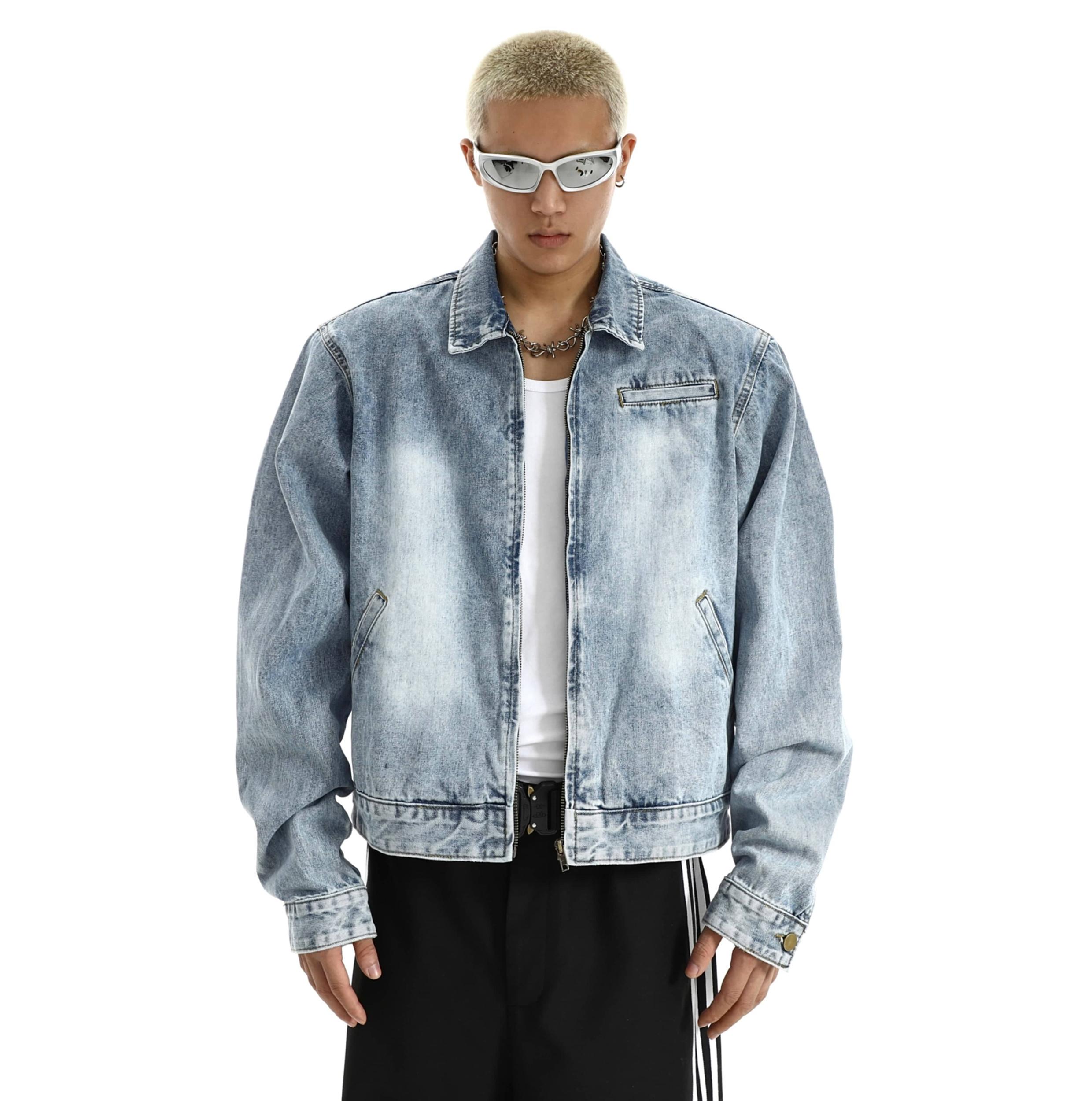 Model is 5ft 9''(176cm) tall, 145 lbs(66kg) weight and wearing a size L168cm 59kg wearing a size M - BLUE- Gradient wash- Zip-up- DENIM- Box loose fit