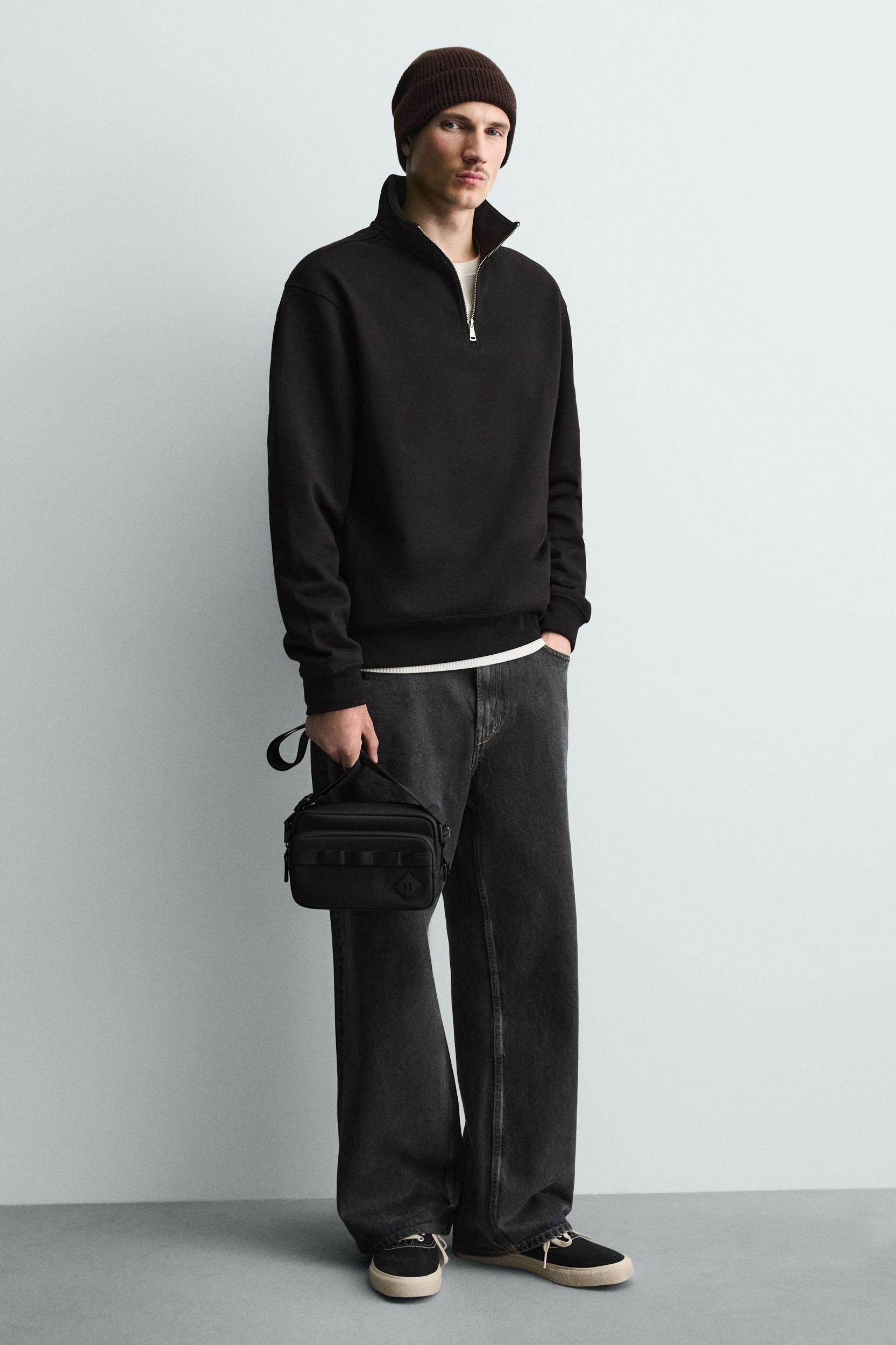 Crossbody bag with a rubberized finish. Main compartment with zipper closure. The interior has a flat pocket. The front has a pocket with zipper closure. Adjustable and removable shoulder strap.