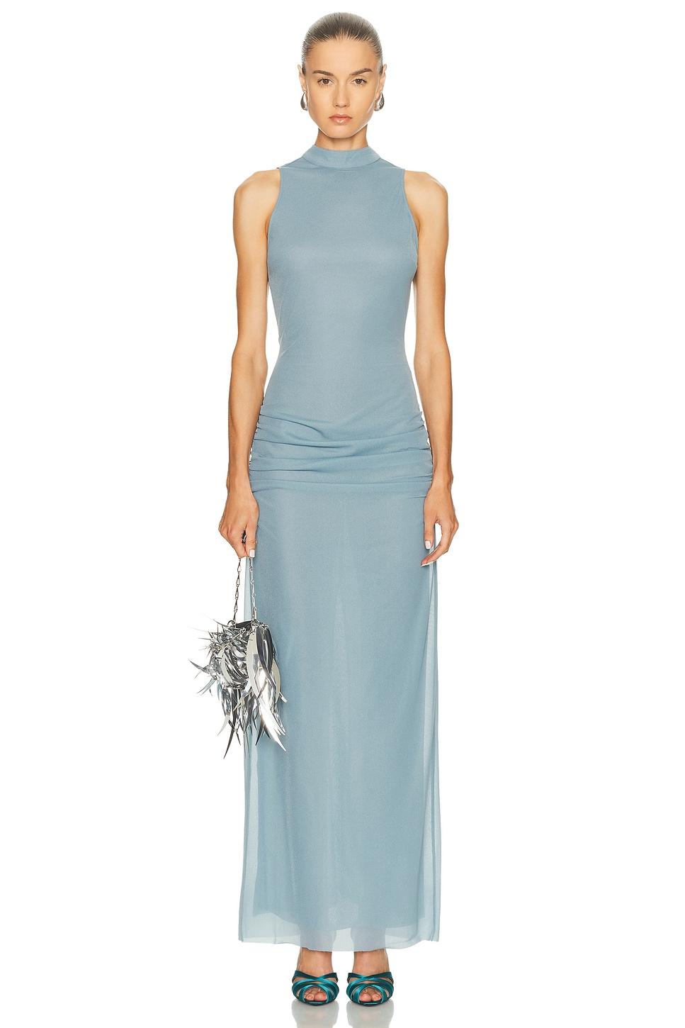 dressSelf and lining: 100% polyester / Dry clean / Pull on stylingHalterneck with hook and eye closure at back / Fully lined / Ruching at waist and back / Garment is made with a semi-sheer fabric, undergarments can show through / Made in China / Our Style No. SIF-WD181 / Manufacturer Style No. SIR225-1049 / Model is wearing size 2/M.