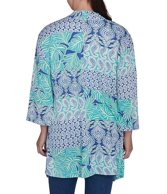 Ruby Rd. Bali Patchwork Print Shawl Collar Long Sleeve Open-Front Cardigan
