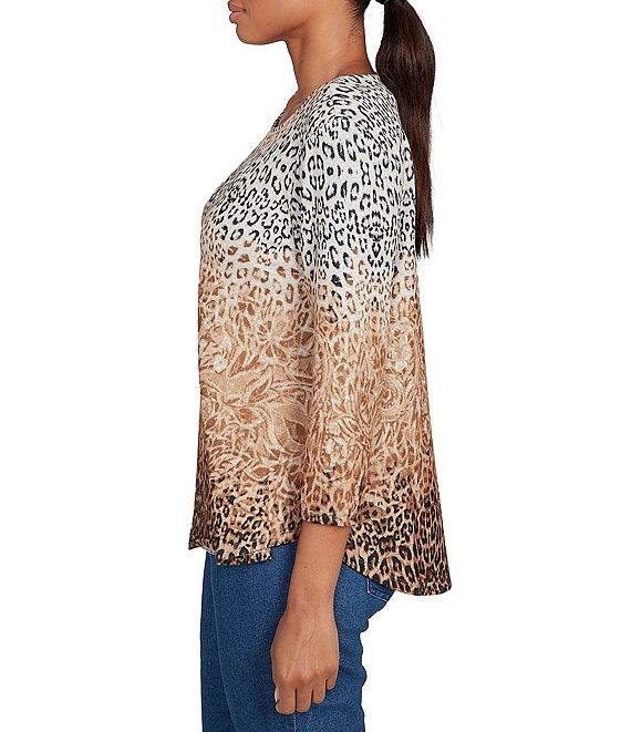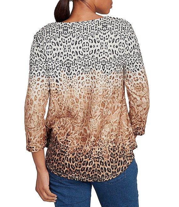 Ruby Rd. Knit Ombre Scoop Neck 3/4 Sleeve Top