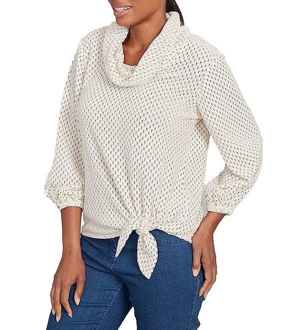 Ruby Rd. Petite Size Cowl Neck 3/4 Sleeve Side Tie Honeycomb Knit Top