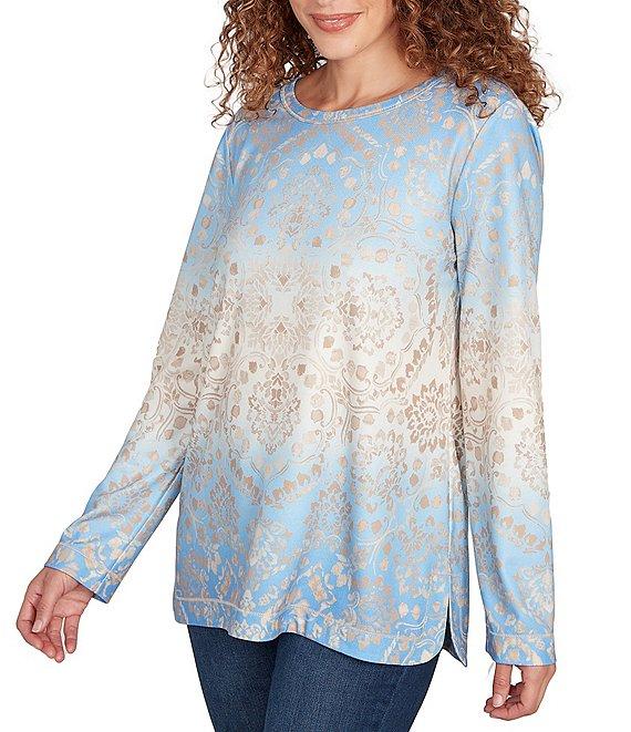 Ruby Rd. Petite Size Knit Medallion Scoop Neck Long Sleeve Top