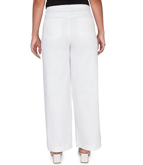 From Ruby Rd. Petite, these pants feature: Soft stretch denim fabrication Wide leg Functional front & back pockets Button-accent front pockets Pull-on construction Approx. 27.50" inseam Cotton/polyester/rayon/spandex Machine wash Imported. A fresh take on a nautical classic. These wide-leg pants feature button-accent front pockets and a smooth pull-on waistband for easy comfort. Made from soft stretch denim with a clean white finish, its a polished staple with playful charm.
