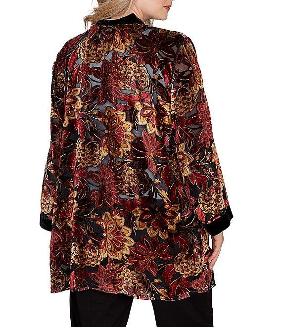 Ruby Rd. Plus Size Floral Burnout Velvet Shawl Collar Bracelet Sleeve Open-Front Cardigan