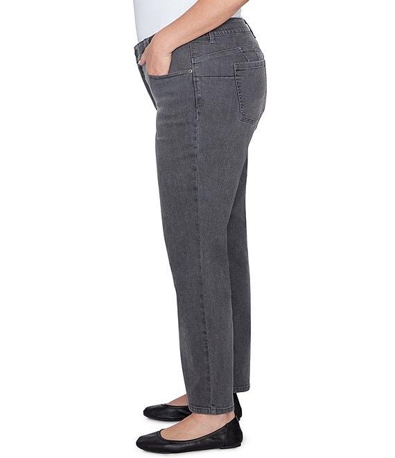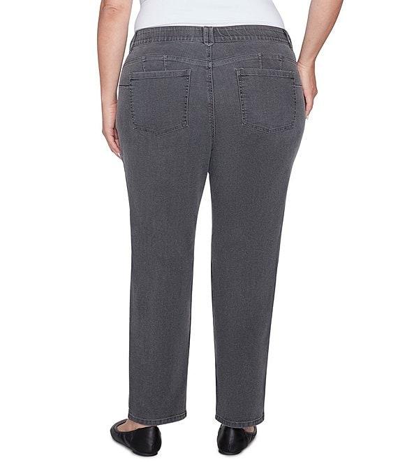 From Ruby Rd. Plus, these denim jeans feature: Denim fabrication Bootcut silhouette Relaxed, comfortable fit Flat elastic waistband for a no-gap fit Faux front pockets; functional back pockets Pull-on construction with a button closure Approx. 30.25" inseam Cotton/polyester/rayon/spandex Machine wash Imported. Wrap yourself in the cloud-like softness and seamless fit of our pull-on terry bootcut jeans. These pants are crafted from a unique terry denim fabric that is incredibly soft to the touch and offers a relaxed, comfortable fit. Designed with a flat elastic waistband for a no-gap fit, faux front pockets for a clean look, and functional back pockets, they combine classic denim styling with the cozy feel of terry. The bootcut silhouette creates a flattering and contemporary look. Experience the difference with our ultra-comfortable terry denim bootcut jeans.