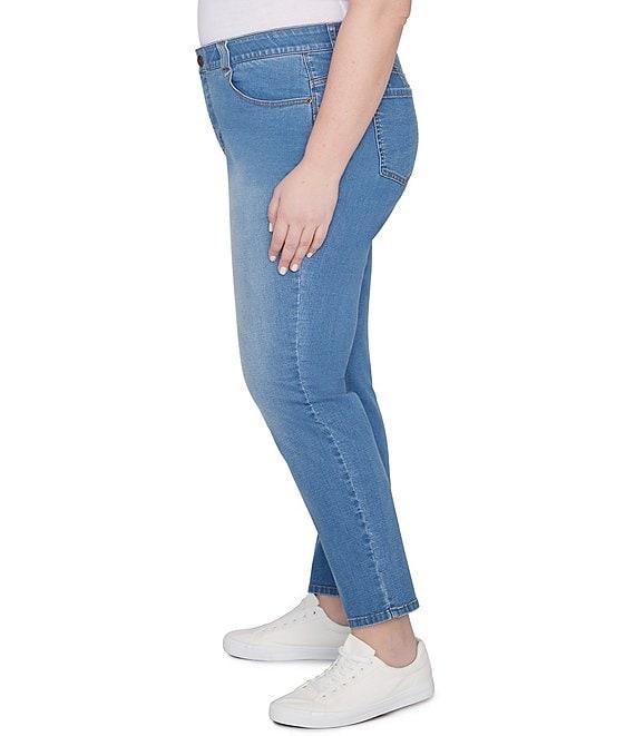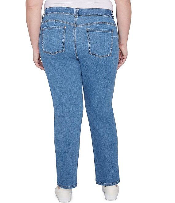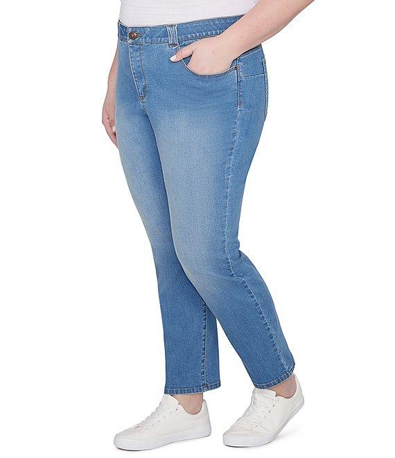 From Ruby Rd. Plus, these denim jeans feature: Soft terry denim fabrication Wide leg Belt loops Functional front and back patch pockets Relaxed fit Button/zip closure Approx. 28.75" inseam Cotton/polyester/spandex Machine wash Imported. Introducing your new favorite wide leg jeans Our comfort terry denim jeans are made from an exceptionally soft terry denim that provides a comfortable and relaxed fit. These pants boast functional front pockets and a traditional button and zipper closure, offering the classic denim look you love. The wide leg silhouette adds a touch of sophistication and allows for easy movement. Enjoy the perfect blend of comfort and style with these essential terry denim pants.