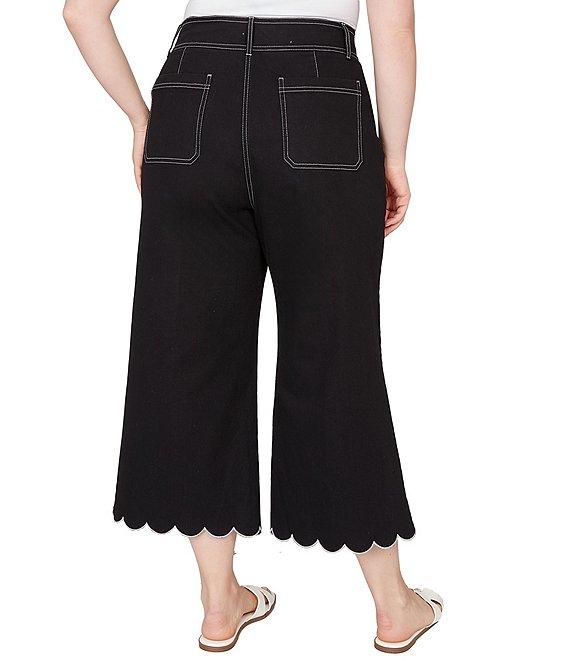 From Ruby Rd. Plus, these pants feature: Lightweight stretch denim Belt loops Front and back patch pockets Contrast topstitching detail Cropped length Scalloped hem Double button/zip closure Approx. 25.75" inseam Cotton/polyester/spandex Machine wash/tumble dry low Imported. Playful meets put-together. This cropped jean is made from lightweight stretch denim and features contrast topstitching, a button fly, plus front and back patch pockets. The scalloped ankle hem adds just the right amount of charm to your everyday denim lineup.