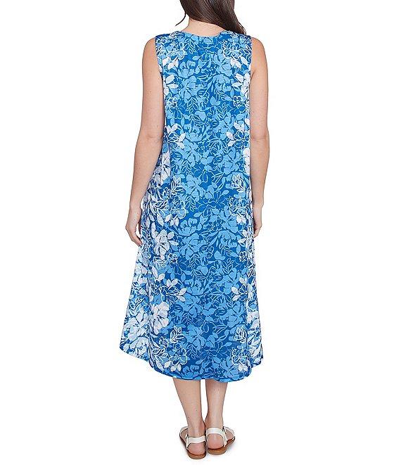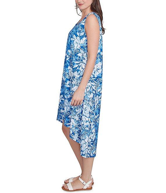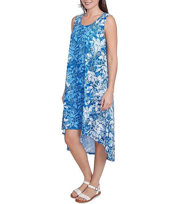 From Ruby Rd., this dress features: Slub jersey fabrication Shift silhouette Scoop neckline Sleeveless Floral ombre print Hi-low hem Pullover construction Approx. 42" front length, 46" back length Polyester Machine washable Imported. Looking chic has never been easier with this floral ombre sublimation-printed stretchy dress. The vibrant print and high-low hemline create a flattering silhouette, while the soft, slub jersey fabric ensures all-day comfort.