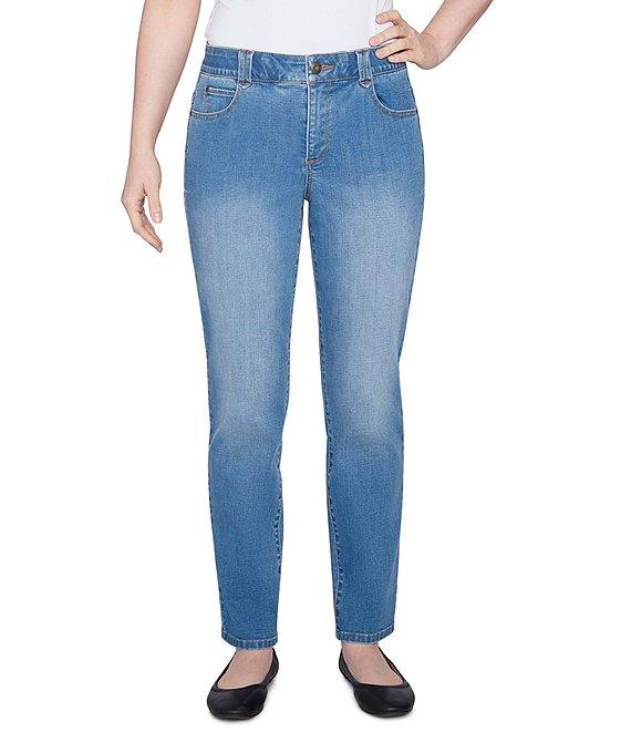 From Ruby Rd., these denim jeans feature: Denim fabrication Bootcut silhouette Relaxed, comfortable fit Flat elastic waistband for a no-gap fit Faux front pockets; functional back pockets Pull-on construction with a button closure Approx. 29.75" inseam Cotton/polyester/rayon/spandex Machine wash Imported. Wrap yourself in the cloud-like softness and seamless fit of our pull-on terry bootcut jeans. These pants are crafted from a unique terry denim fabric that is incredibly soft to the touch and offers a relaxed, comfortable fit. Designed with a flat elastic waistband for a no-gap fit, faux front pockets for a clean look, and functional back pockets, they combine classic denim styling with the cozy feel of terry. The bootcut silhouette creates a flattering and contemporary look. Experience the difference with our ultra-comfortable terry denim bootcut jeans.