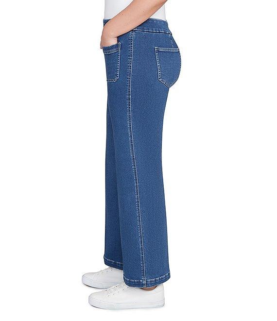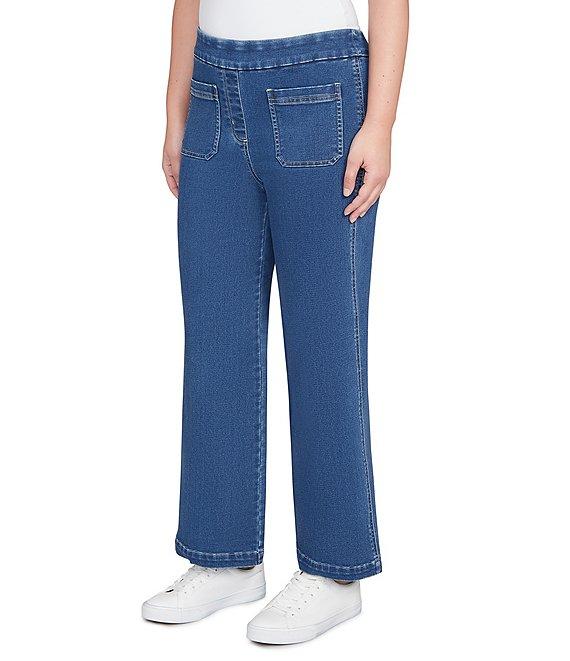 From Ruby Rd., these jeans feature: Stretch cotton-blend fabrication Wide elasticized waistband Wide leg silhouette Functional front and back patch pockets Pull-on construction Approx. 28.25" inseam Cotton/polyester/spandex Machine wash/tumble dry Imported. Cozy meets chic with our Patch Pocket Lined Jeans. Featuring soft terry lining for all-day comfort and small patch pockets in the front for a touch of utility, these pull-on jeans are the perfect mix of laid-back style and easygoing comfort.
